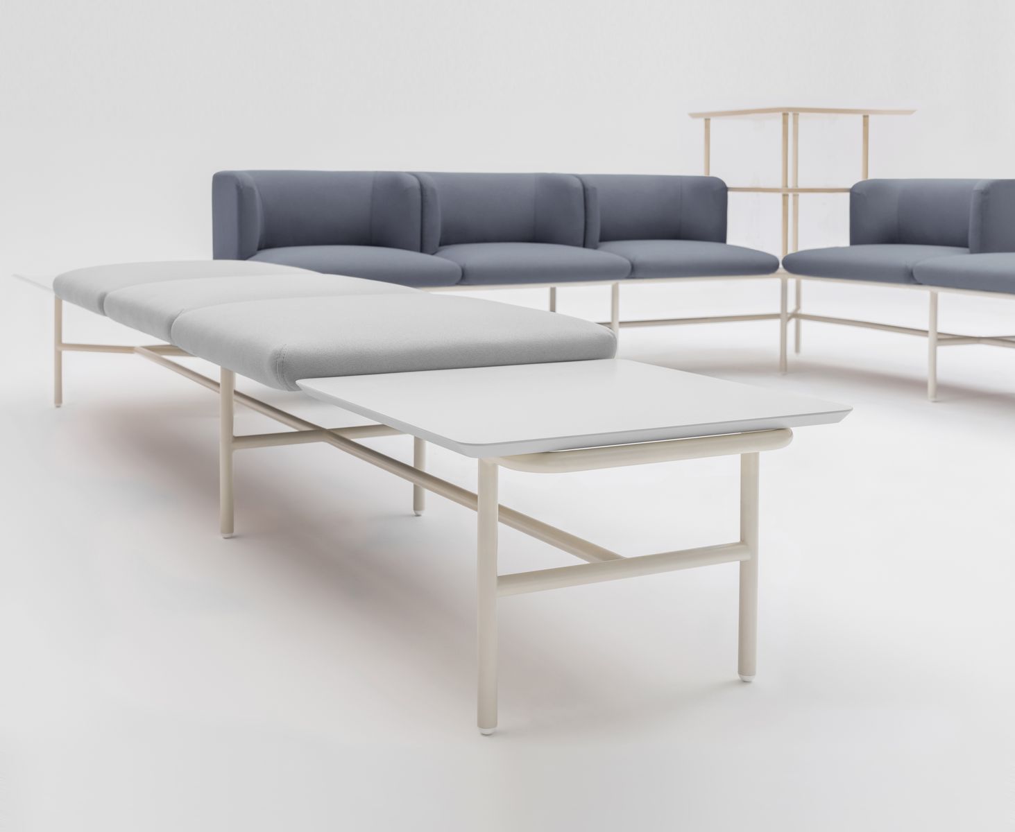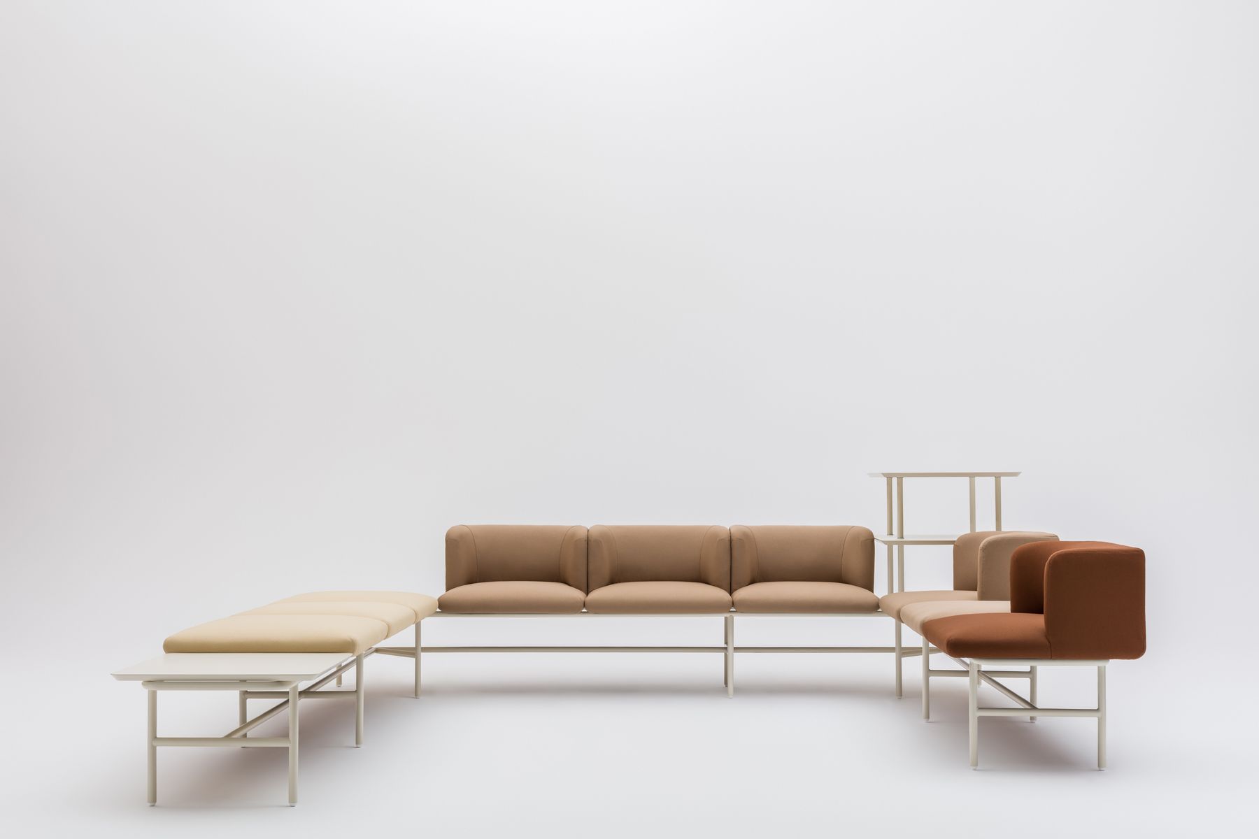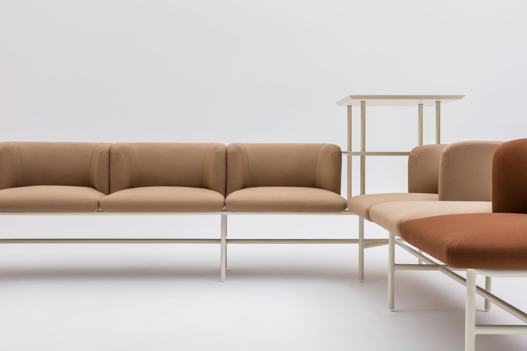 Allowing for multiple configurations, Agora embodies flexibility. As it is built on gridded structure, it can be arranged as straight 2-seater as well as corner sofa system accommodating as many people as you need. With two seat types made from highly durable foam, Agora can be tailored to your comfort. Choose either cushion seat or option with comfy backrest following a minimal aesthetic in a spectrum of colours – from vibrant to muted. Add table top for increased functionality or three-tiered shelving unit when extra storage is needed. Combine these square-shaped units |
