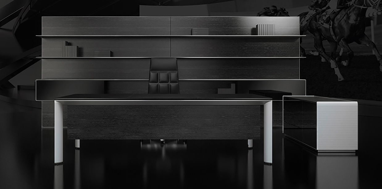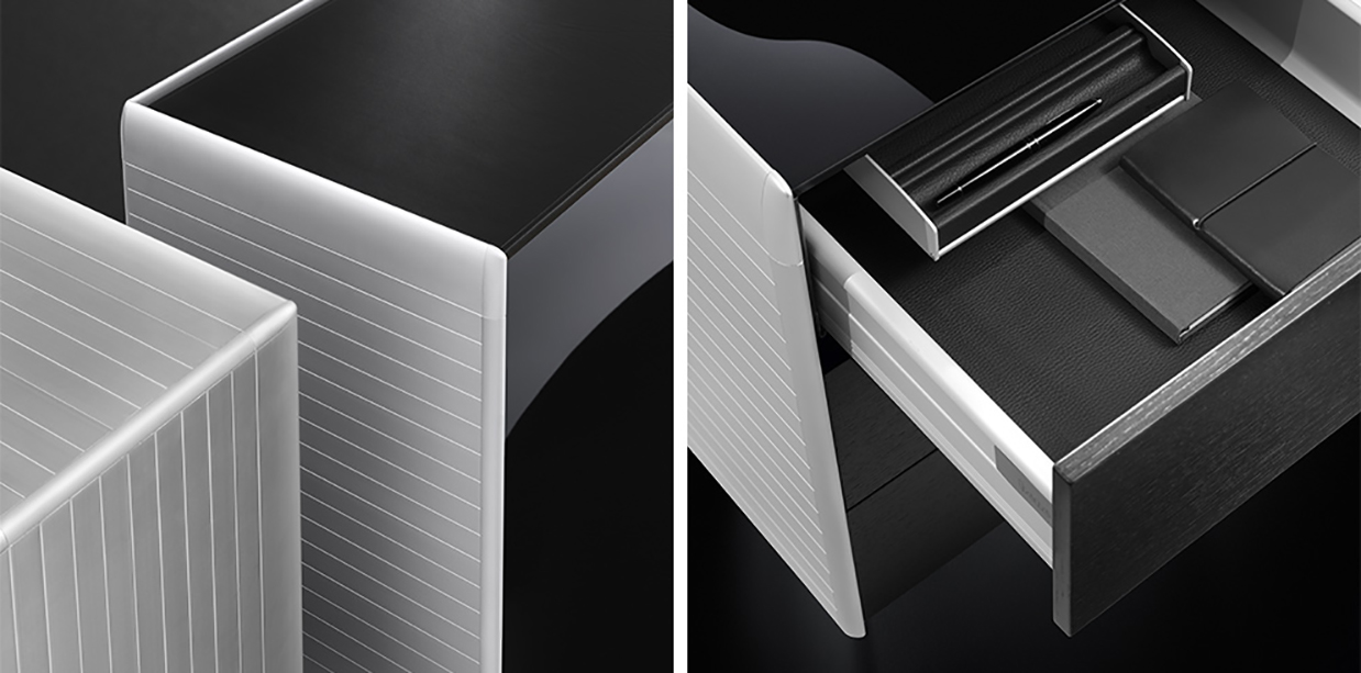 A convincing first impression with maximum attention to detail: AL Selection combines aluminium with oak, glass and premium thick leather. The executive desks provide modern media integration and drawers with electronic locking. LED background lighting provides a clear overview. The manager is able to concentrate on the essentials.