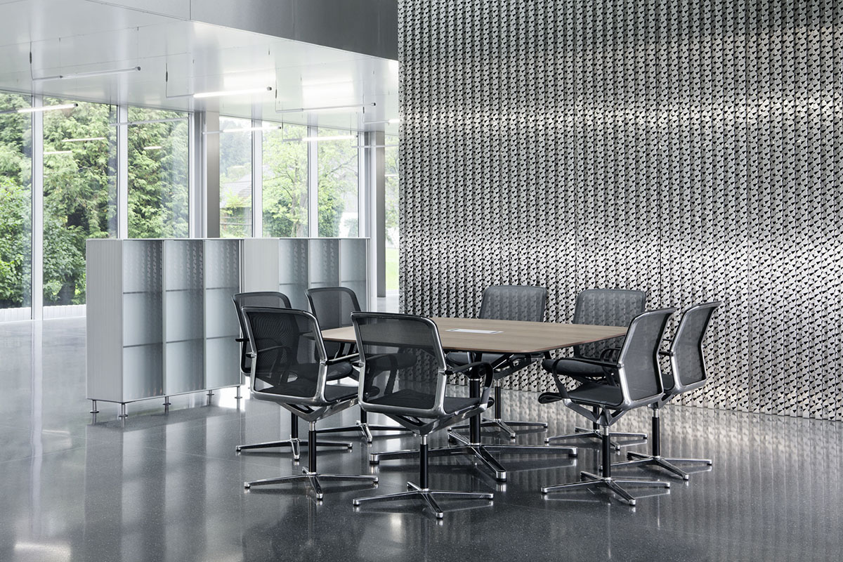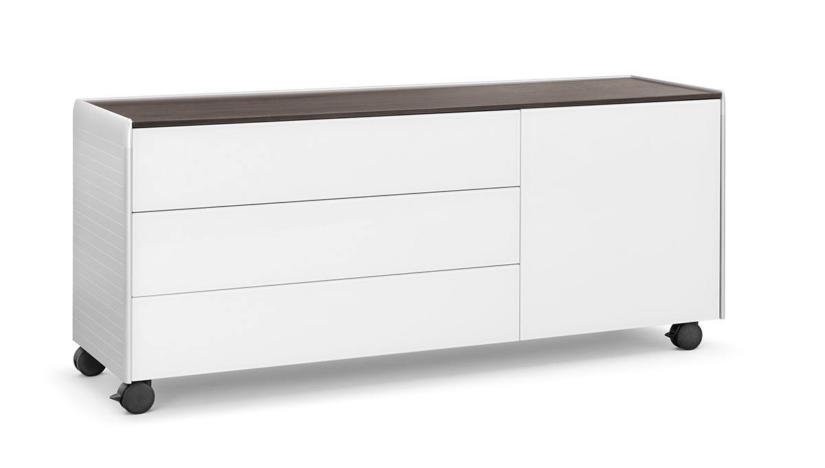 - Internal fitment options for AL pedestals, sideboards and credenza units: fixed or adjustable top with cable tray and power module, and either an electronic or mechanical lock, a soft-push latch plus an optional servo-drive mechanism.