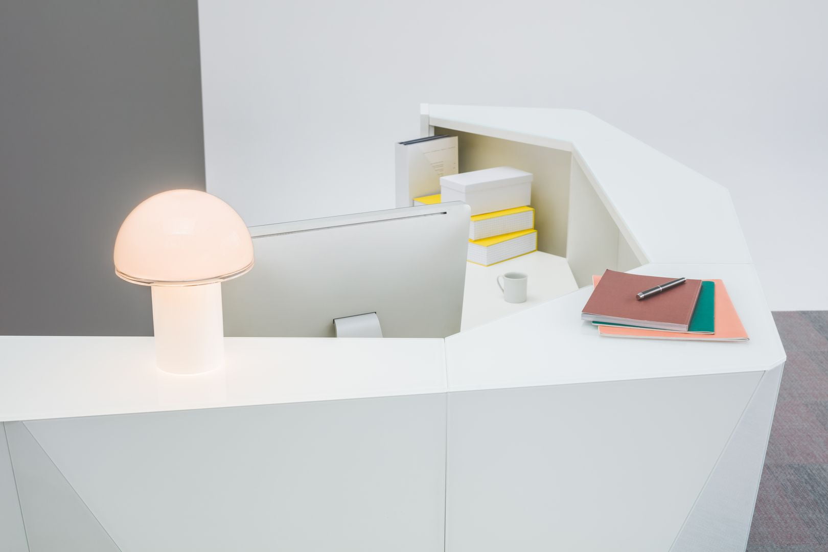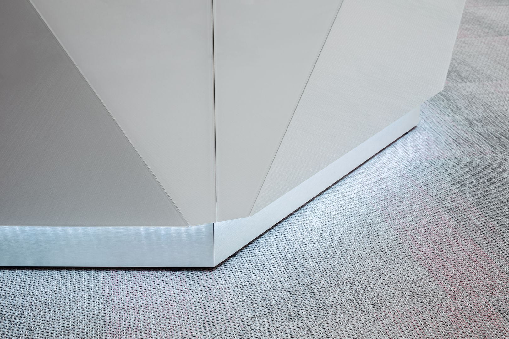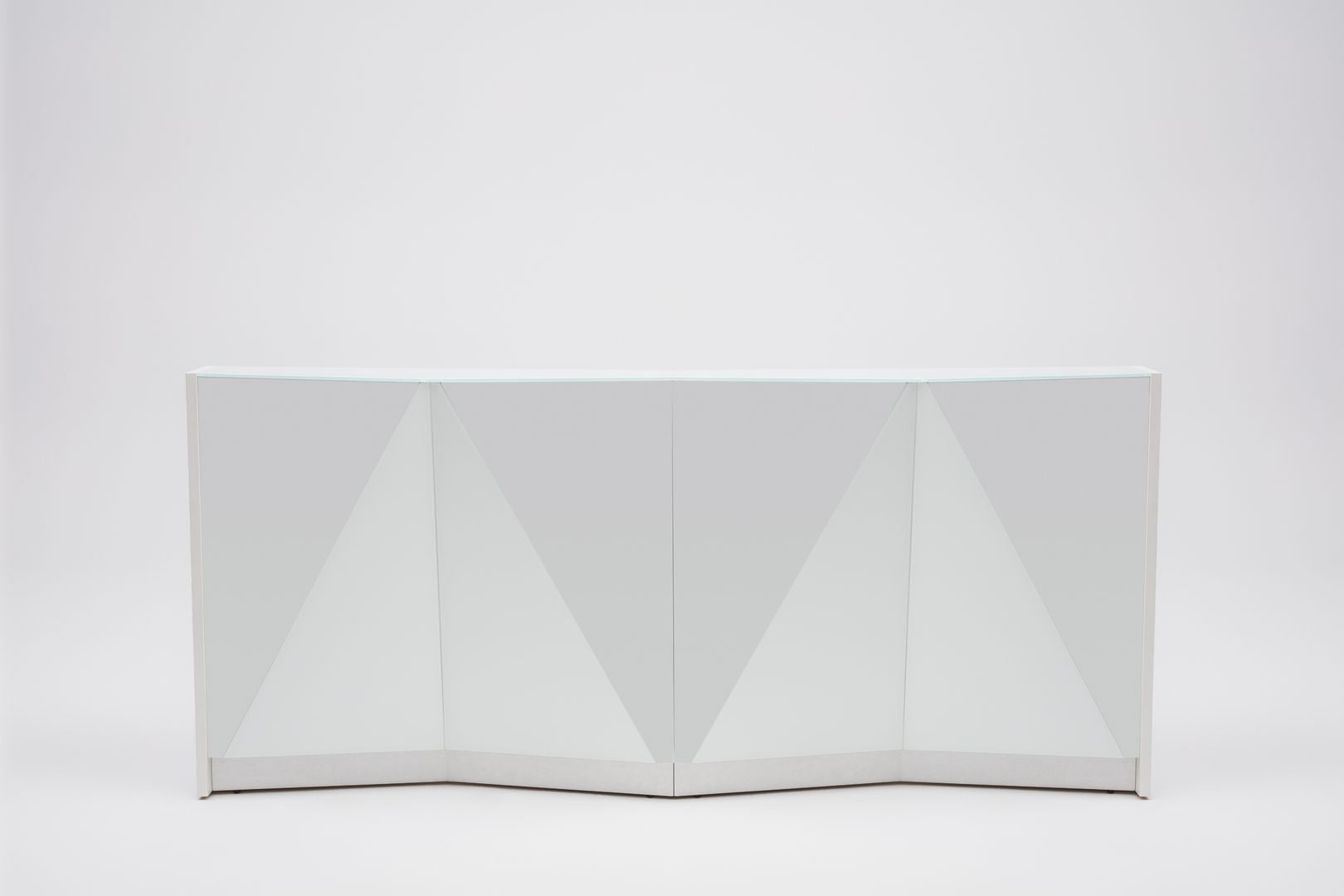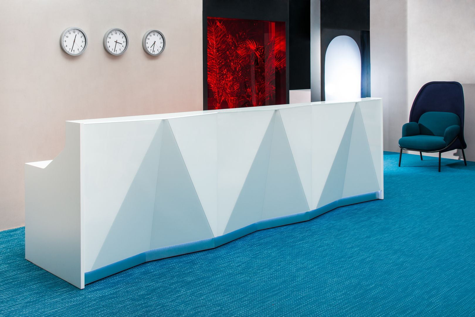 Evoke the feel of nature in your spaces with this reception desk inspired by the shapes of the Alps. Crafted not only to make guests |