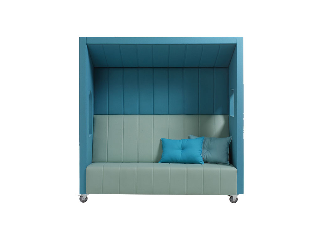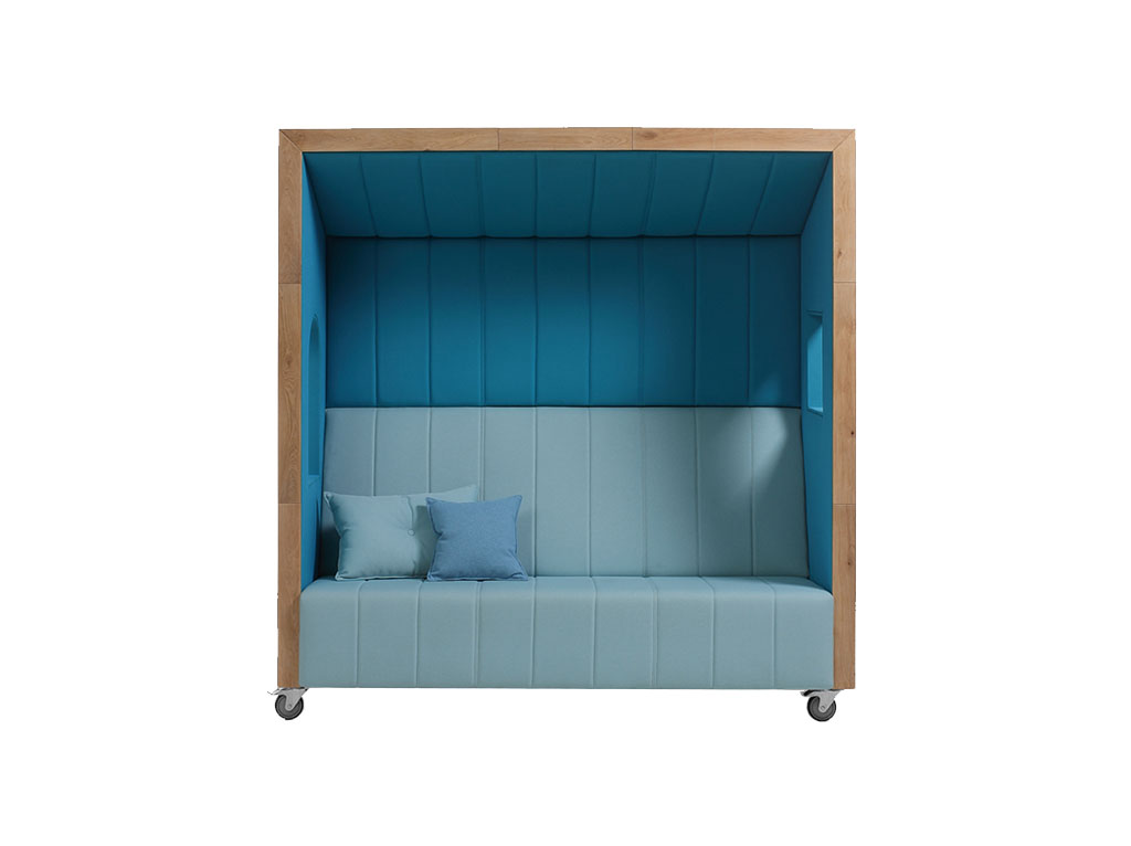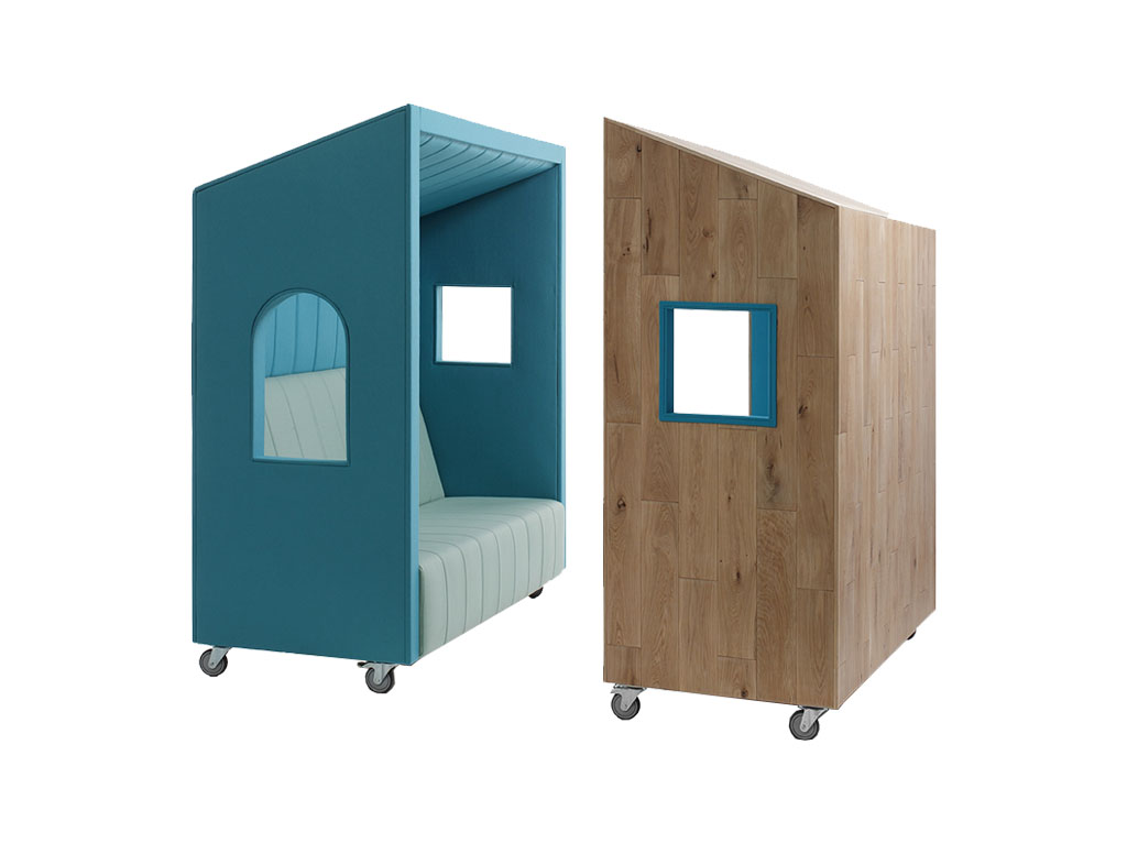 The BEACHHOUSE shape designed by Dymitr Malcew refers to a hooded beach chair and introduces a positive feeling of summer inside. The common seating area helps its users break the ice and determine a harmonious line of action. It is much easier to solve the company problems in a comfortable space. As we see who we are talking to and, at the same time, we do not hear other people, we can present our ideas freely and specifically.
