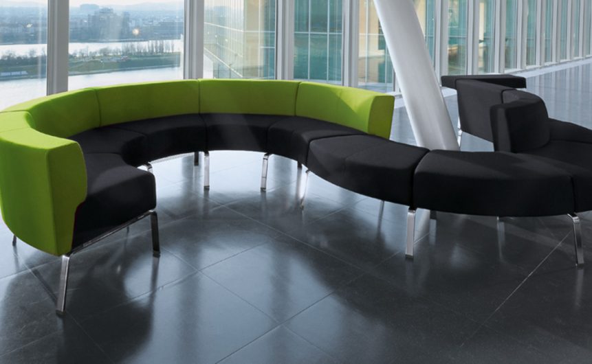 Coffice – a furniture set consisting of an armchair, sofa, bench, and table elements – ideal for waiting areas, or for communicating or working in a relaxed atmosphere. The wide armrest acts as a work surface and provides space for documents, laptops, or a cup of coffee.