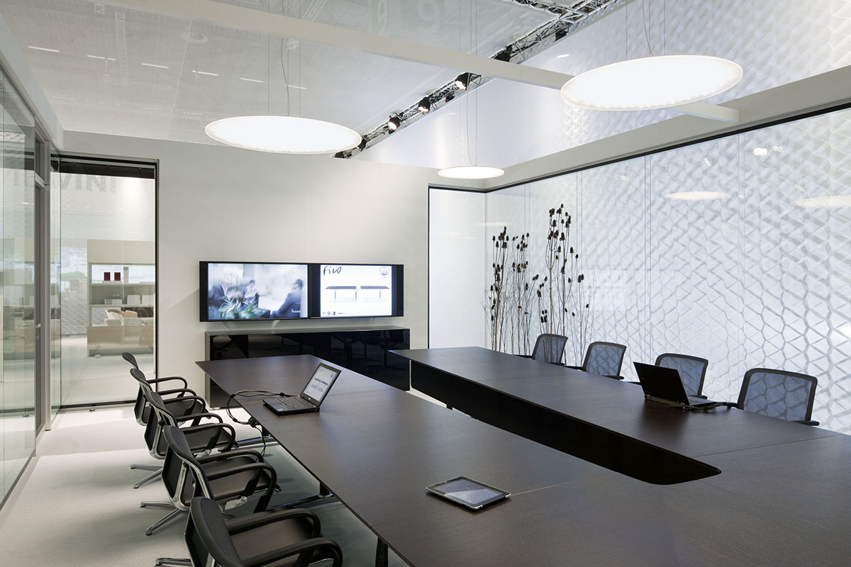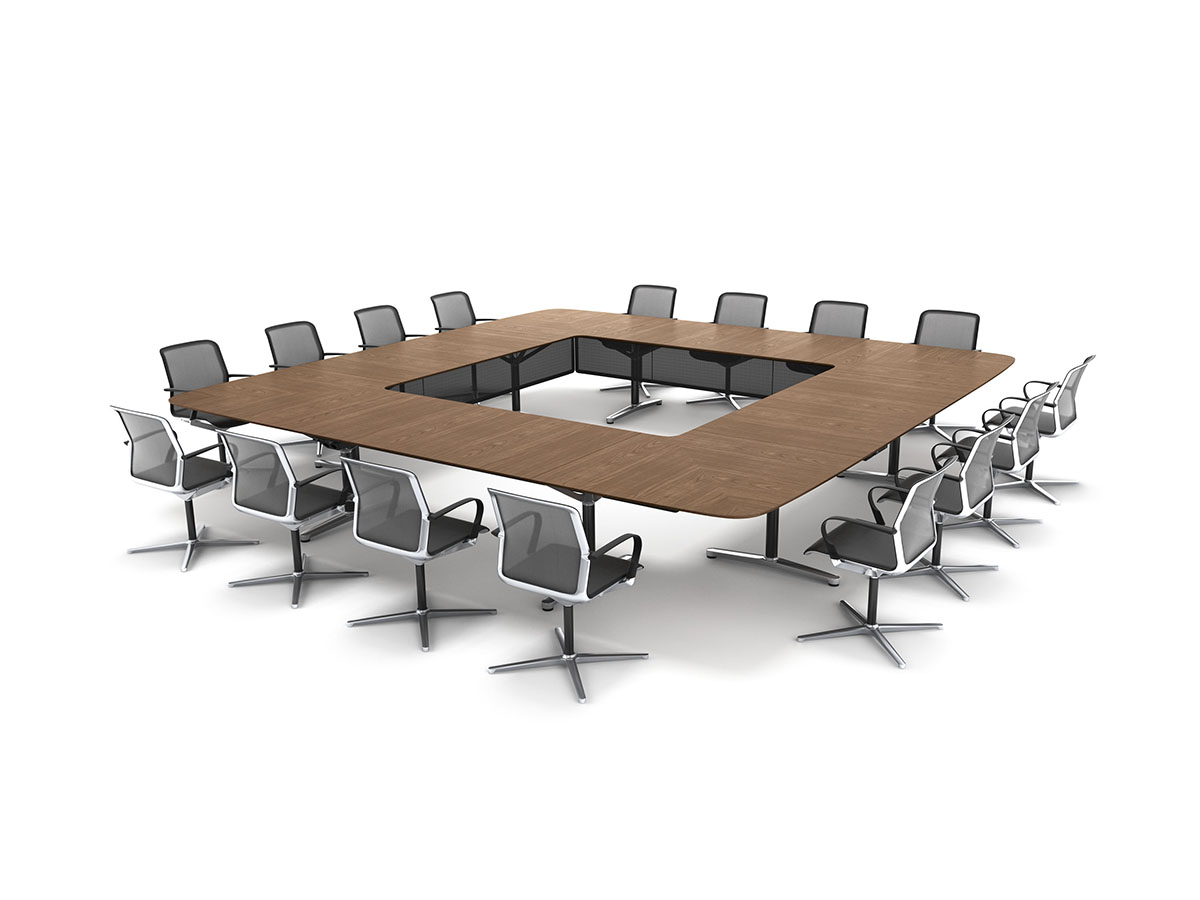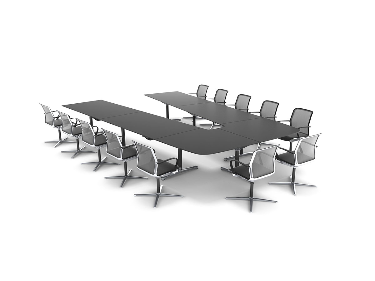 The Filo Table represents concentration, communication and the intelligent integration of media technology. Filo owes its lightness to the distinctive shape of its base, designed using four widely spread ‘antler‘ style arms.The Filo Table radiates elegance, and offers smooth surfaces with hidden technology that leaves the conference table’s surface untouched. Filo Table proves its adaptability with its modular construction and expandability.