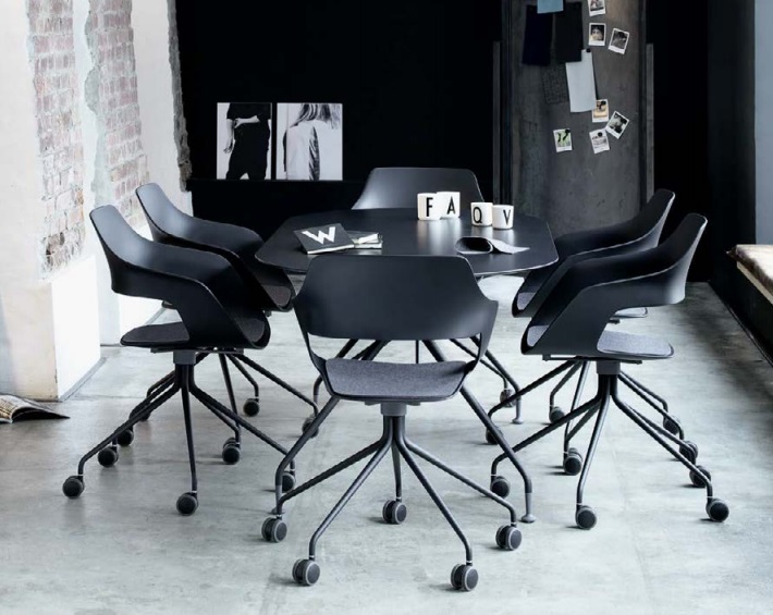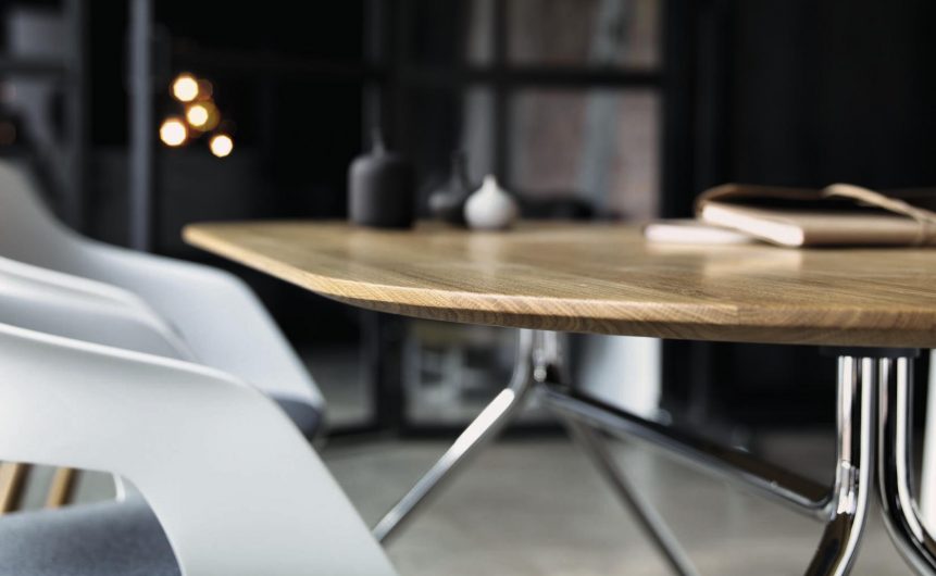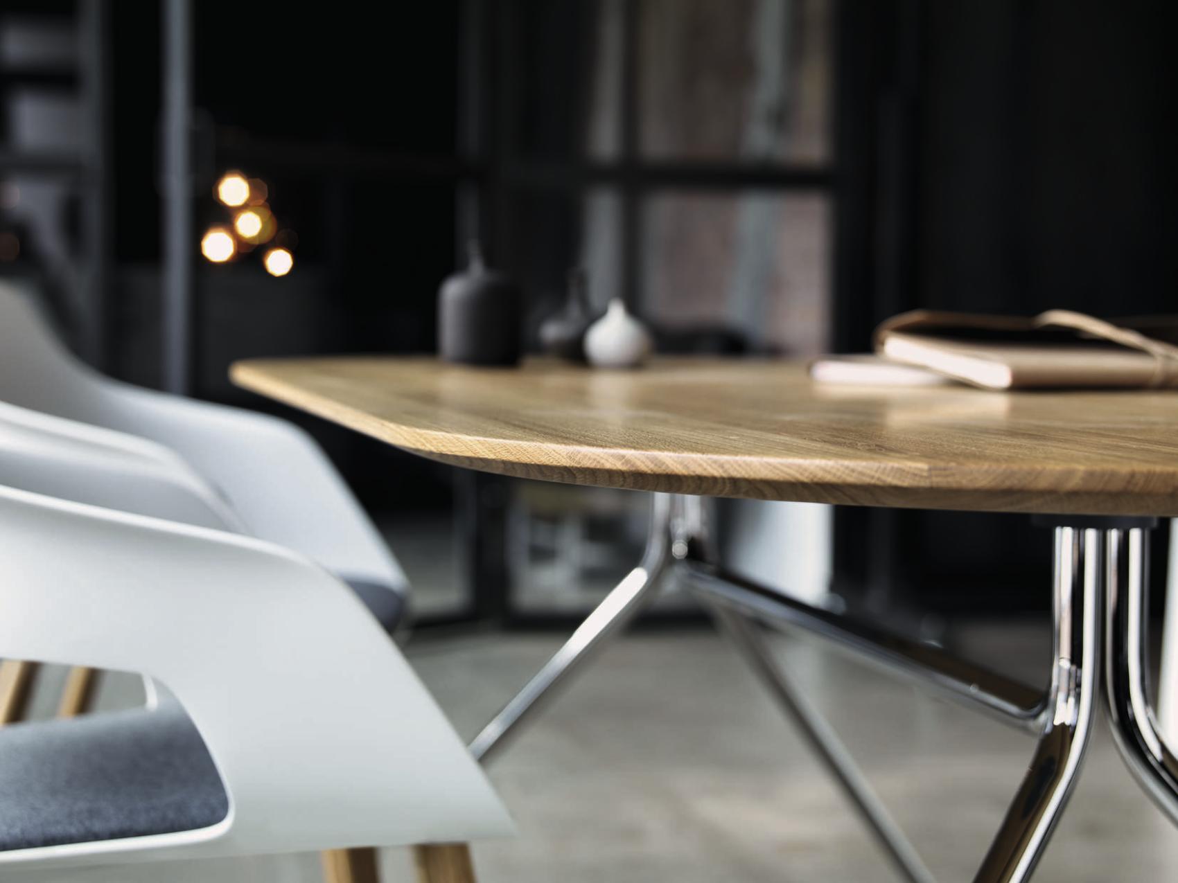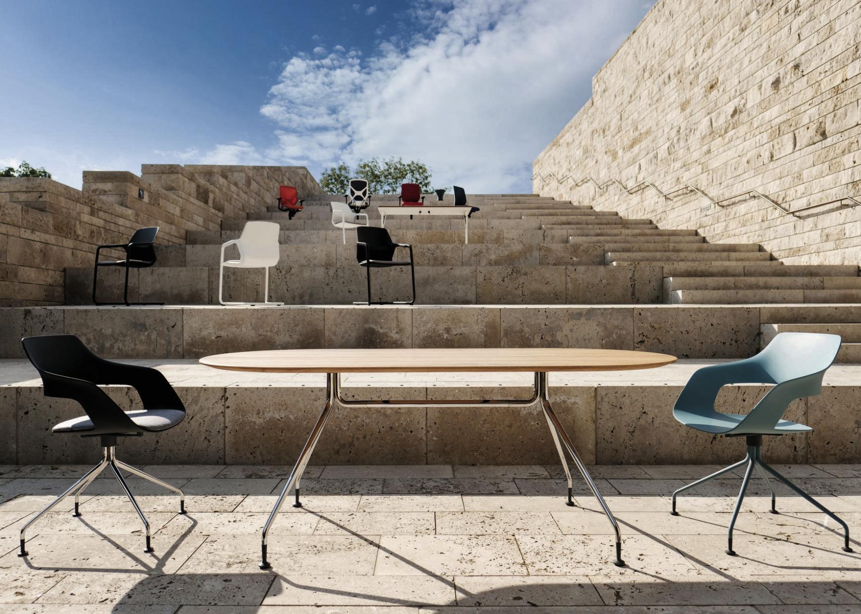 A table range also complements the chairs. The tubular steel table frame optionally comes withswivel castors and echoes the contours of the star base. The table shapes reflect the mix of anorganic form with clear geometries. There’s a choice of square, rectangular, round and ovalformats depending on usage, the number of places required and the size and characteristics ofthe room. The table tops are available with bonded plywood surfaces, MDF panels with realwood veneers, through-dyed HPL (High Pressure Laminate) or solid oak panels. * see all technical information |
