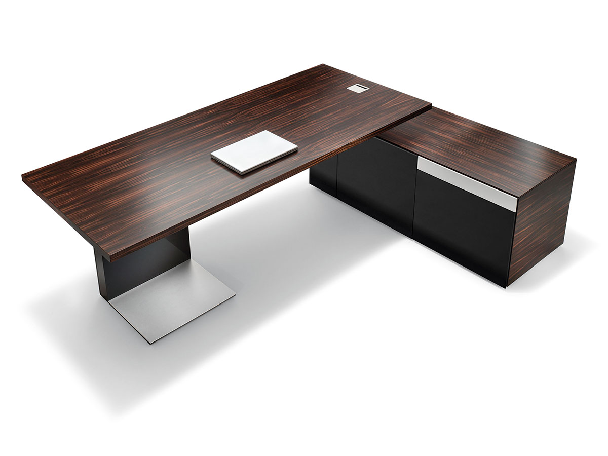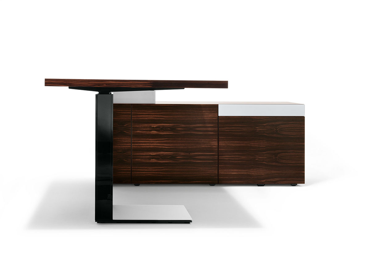 The desired look can be created through the choice of materials, colours and surfaces: veneer, glass and brushed aluminium, leather and glossy surfaces create a contemporary feel. |