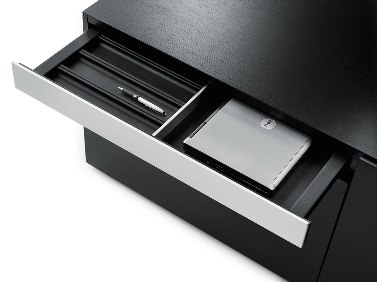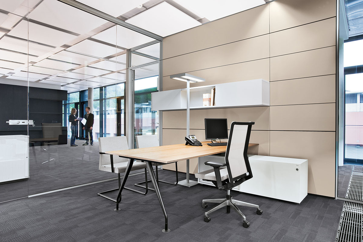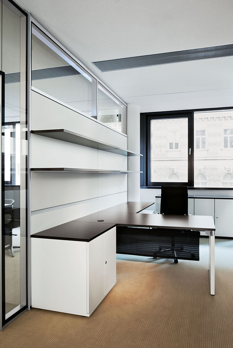 Clear lines, a confident aura and high-quality workmanship distinguish the P2 programme. The elementary form language of its understated elegance is very persuasive. P2 Storage includes wall shelves, cabinets, credenzas with media integration, pedestals and sideboards that add character to the rooms. As individual items of furniture or combined in sets, they can be used in a wide range of spaces – for example, in representative management offices or meeting and conference rooms that focus on communication.