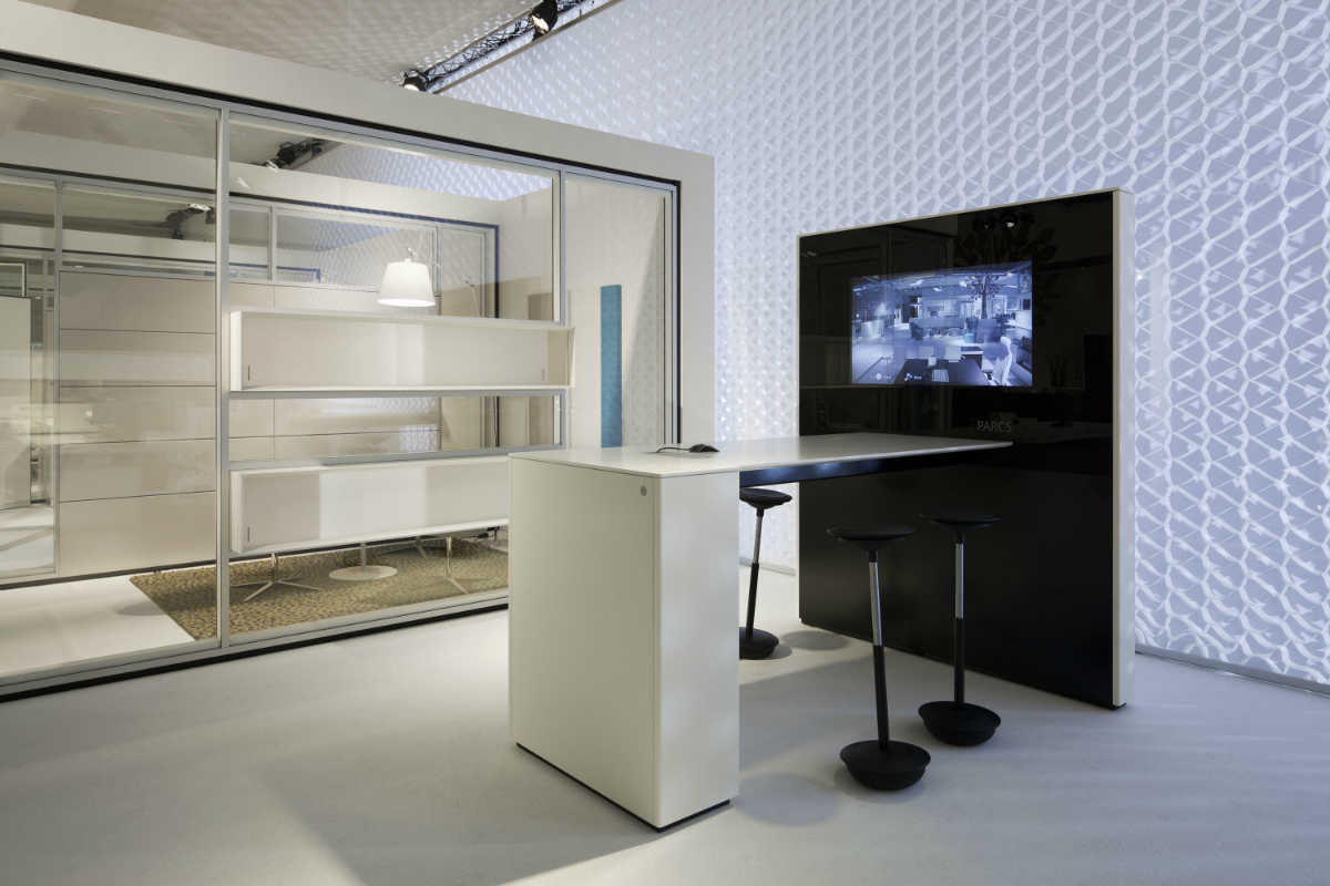 The Idea Wall is a free-standing wall setting that comes in multiple versions. The Idea Wall Bridge is the right choice for quick meetings while standing, and the Idea Wall low with table is comfortable for longer meetings. The Idea Wall Corner offers the perfect setting for presentations.