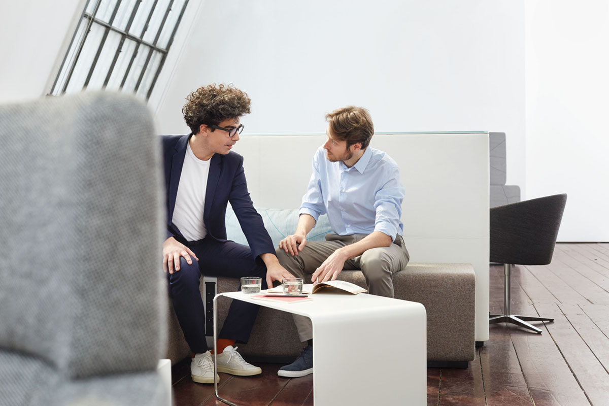 Whether cylindrical, on runners or with a chair base – with their diverse and characteristic designs, the PARCS side tables stylishly integrate into the PARCS portfolio. They can also supplement the PARCS elements on a functional level, as an upright table in the Toguna or used with the various seating elements. They are the convenient little helpers when surfaces need to be provided for meeting documents, laptops or glasses. PARCS Tables are part of a multifunctional work landscape where communication and recreation are located.