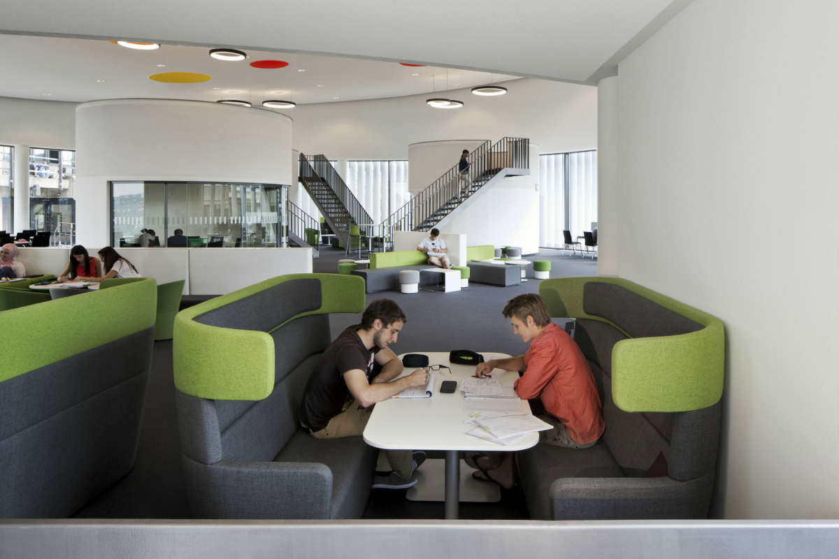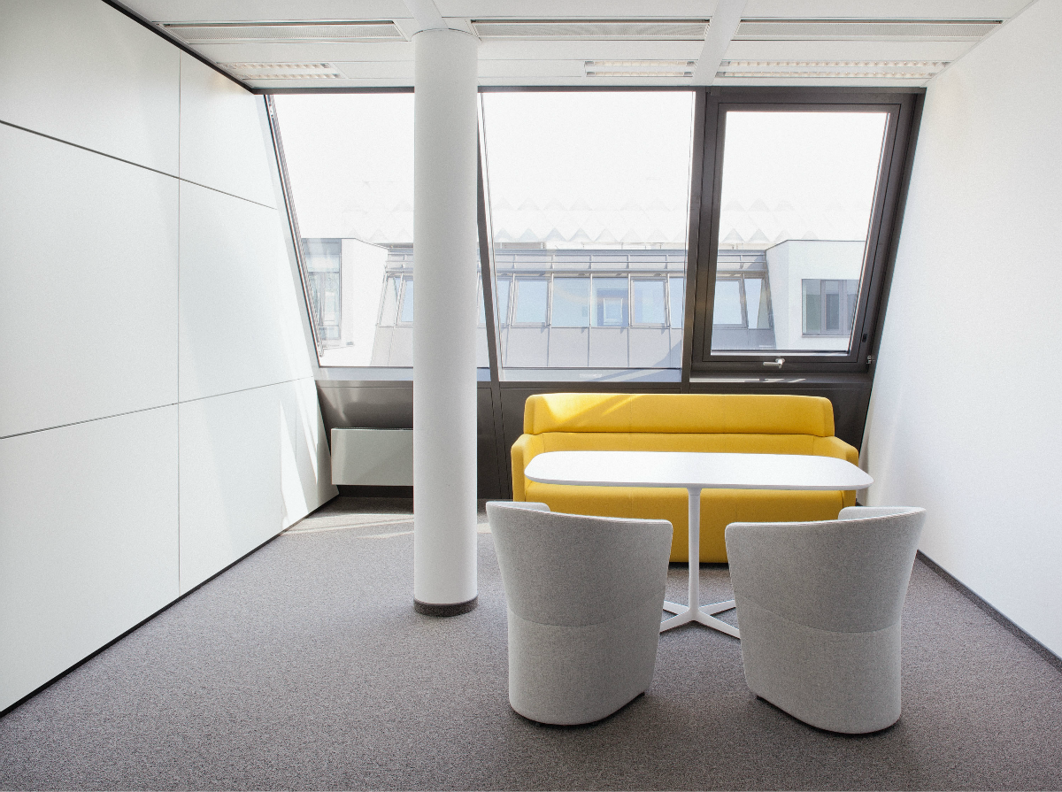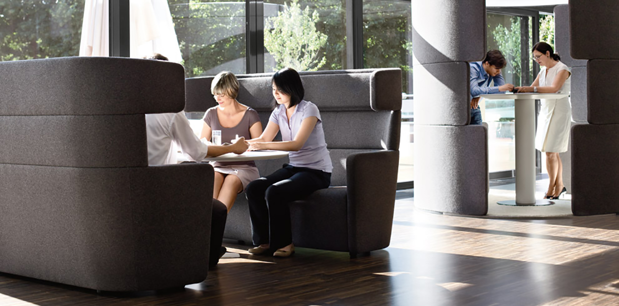 The shape of the Wing series is based on traditional wingback seats. Lateral headrests provide a visual and acoustic shield and facilitate focused work that requires concentration. Comfortable upholstered seating and backrests enable relaxed working and communication.