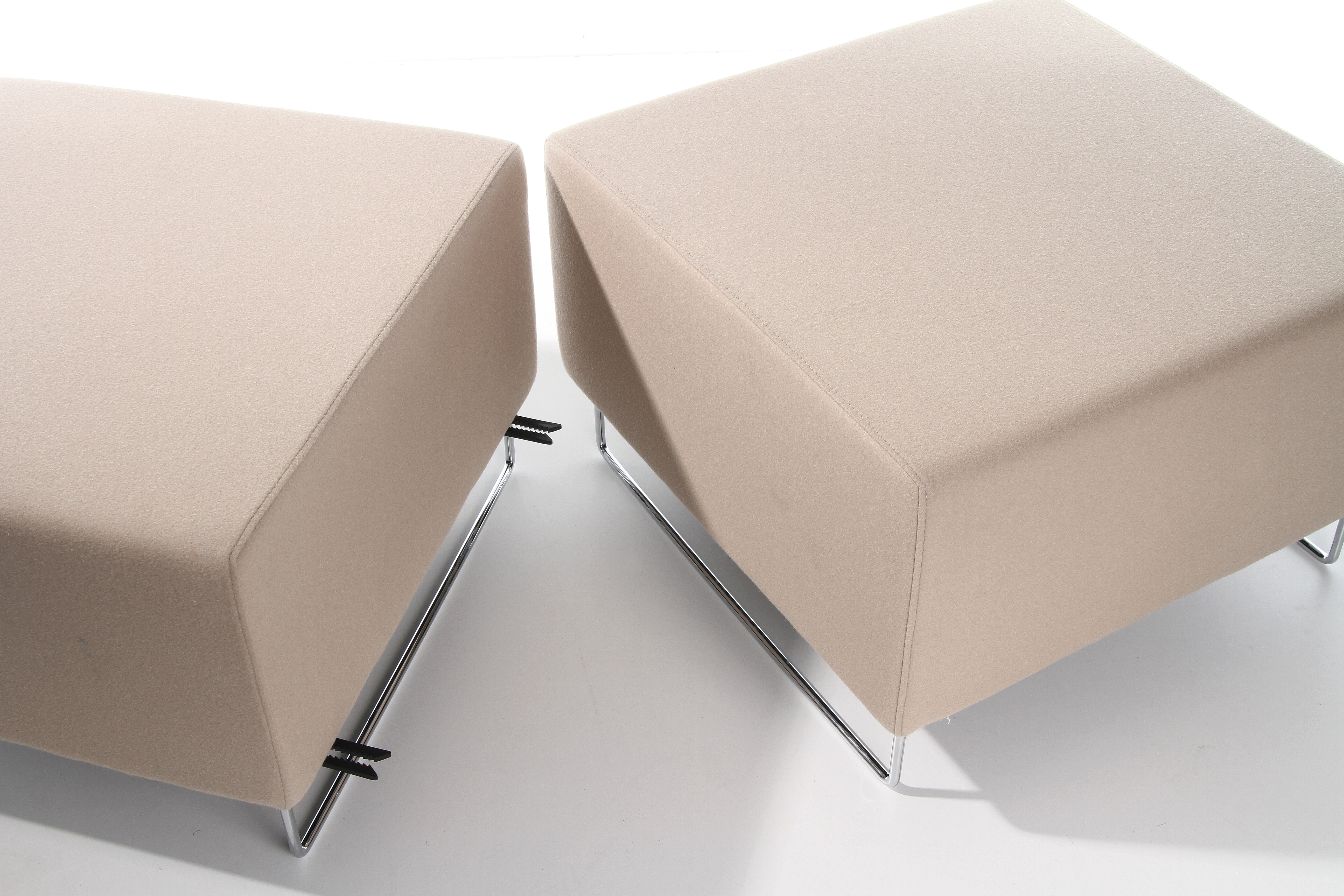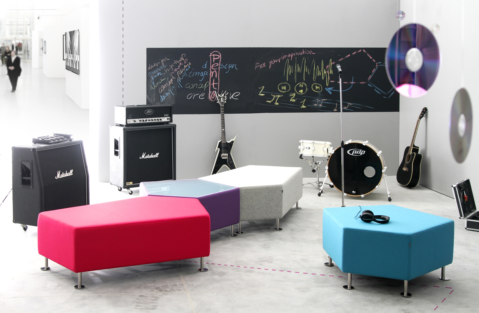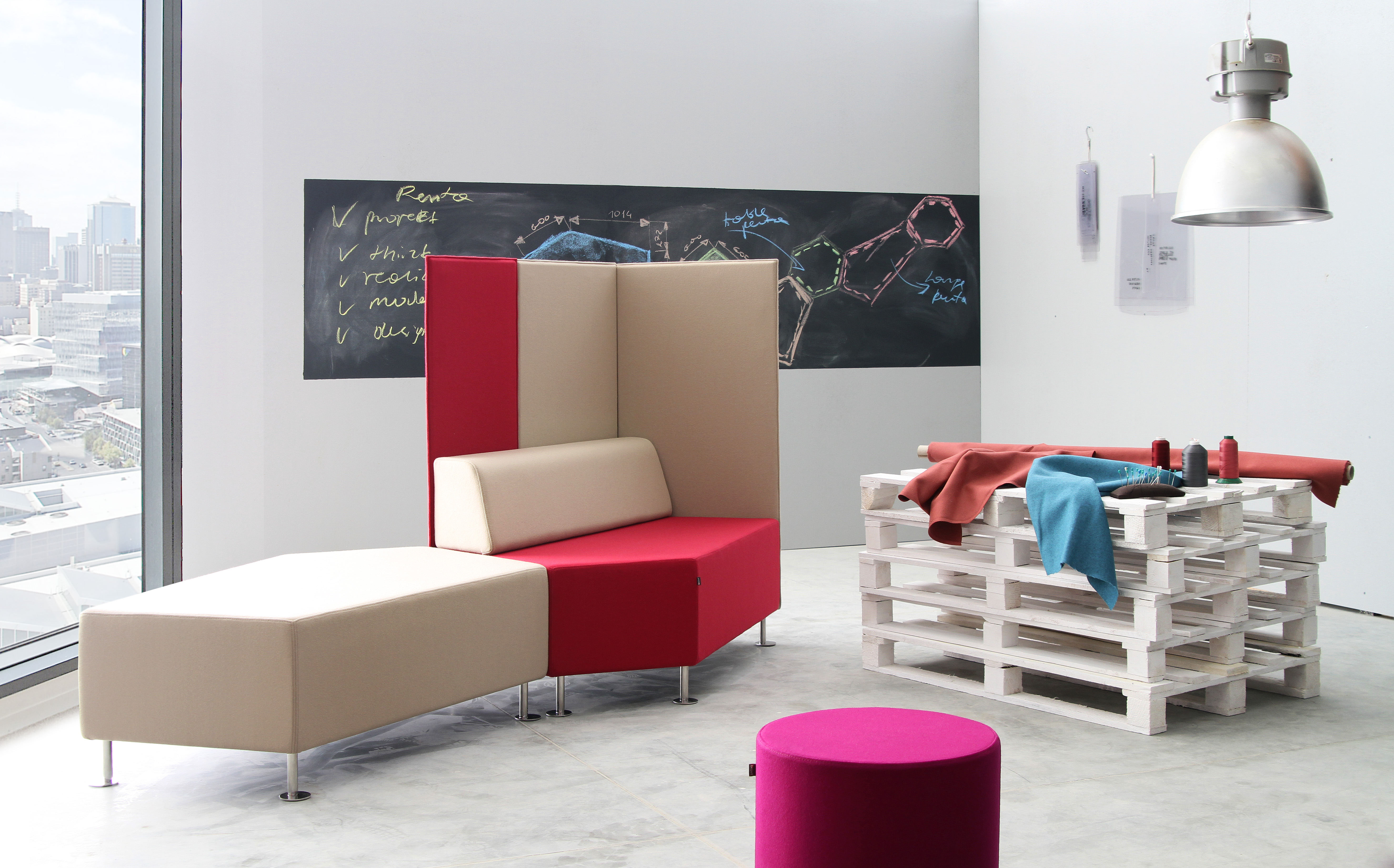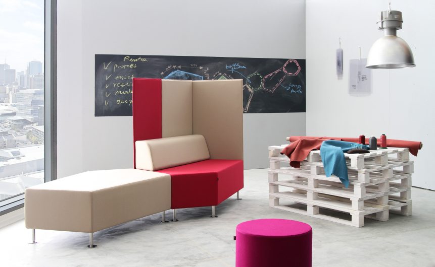 Penta comprises light poufs available in two different sizes and with a distinguished shape enabling any arrangements and combinations, depending on the user’s needs and the interior arrangement. This collection is supplemented by walls upholstered with Blazer fabric or 3D net enabling smaller zones separated from noise and buzz to be arranged in public places. PENTA