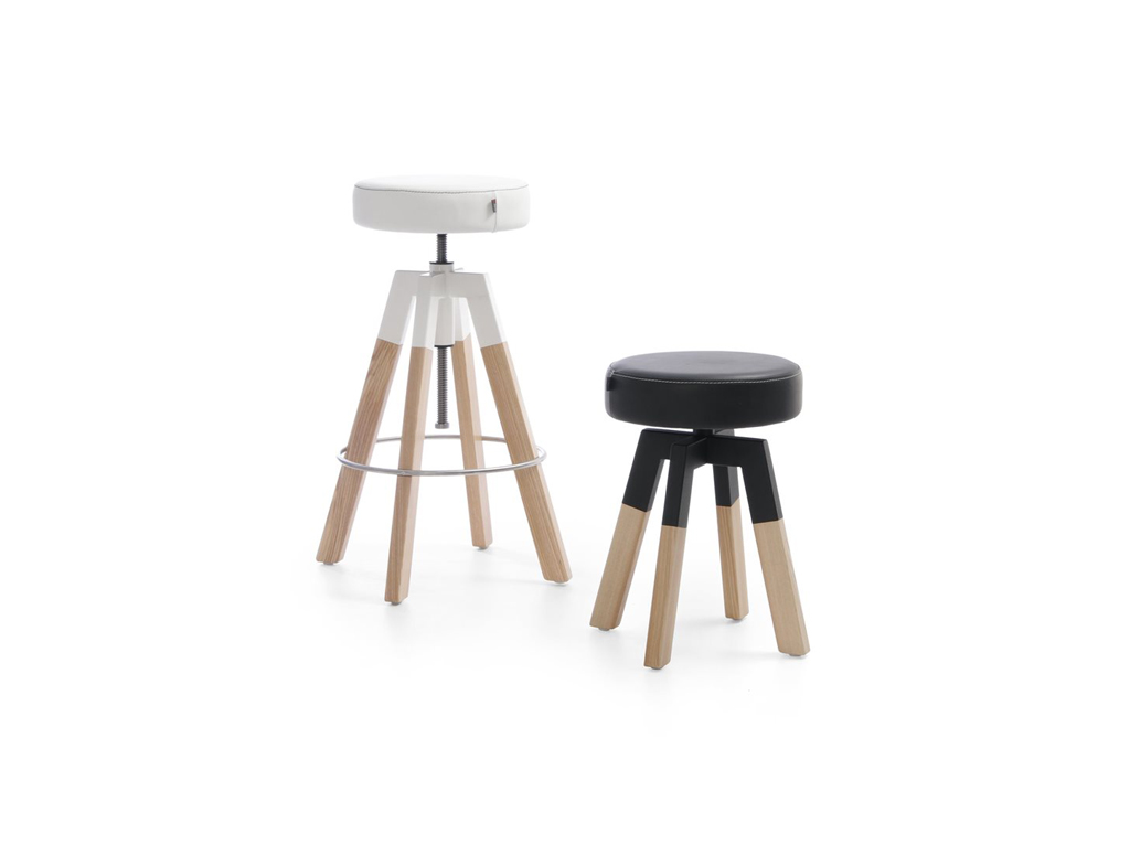 We wish to be seduced by simplicity, but at the same time we want the objects surrounding us to be well-thought-out and high-tech. The answer is the practical and captivating Spin collection. It comprises a height adjustable swivel hocker that perfectly fits the “sitting & standing” – type solutions. The Spin collection proves that it is all about well-designed detail. A detail that makes the product visually unique and raises comfort to the next level. The collection is completed with two stools with a metal or wooden frame and a standard seat height.