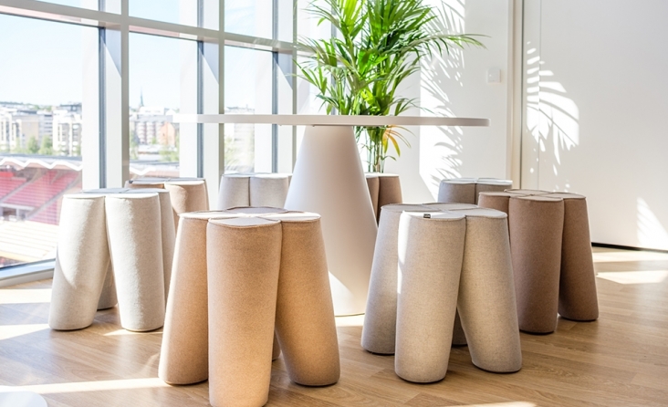 The family consists of three types of seats of different sizes: pouf, stool and bar stool. ln addition, the stool can be used as a table when you put a separate table top on it. There are three variants of sewing finishes to choose from: standard seam, right-hand seam and right-hand seam with an additional inset in any color.