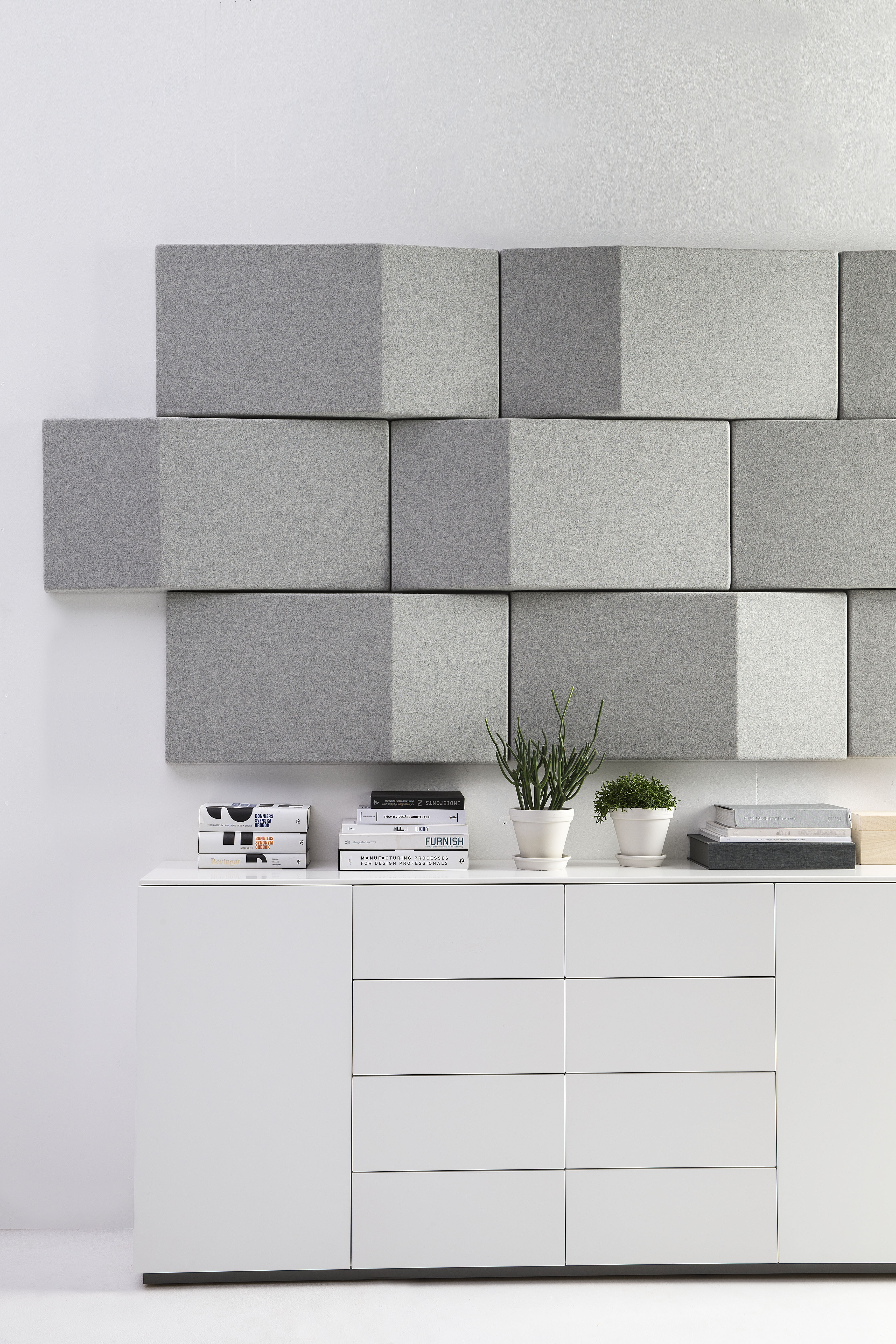 Triline Wall creates a better soundscape by both diffusing and absorbing sound waves. At the same time, the triangular prism shape of its panels interacts with light to introduce a visual dynamic and movement to the space. The sound-absorbent panels can be mounted horizontally or vertically, allowing you the freedom to construct both symmetrical and asymmetrical formations. Technical information, sizes and dimensions