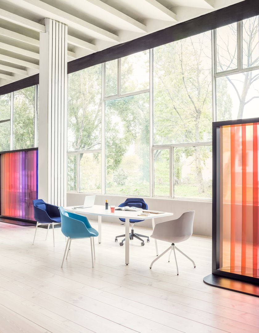 The Ultra armchair sets a new standard of comfort for conference chairs, thanks to a unique, soft cushioned backrest. Ultra is a contemporary piece of furniture, produced using the latest technology to obtain a complex form with a slimline aesthetic and sophisticated lines.