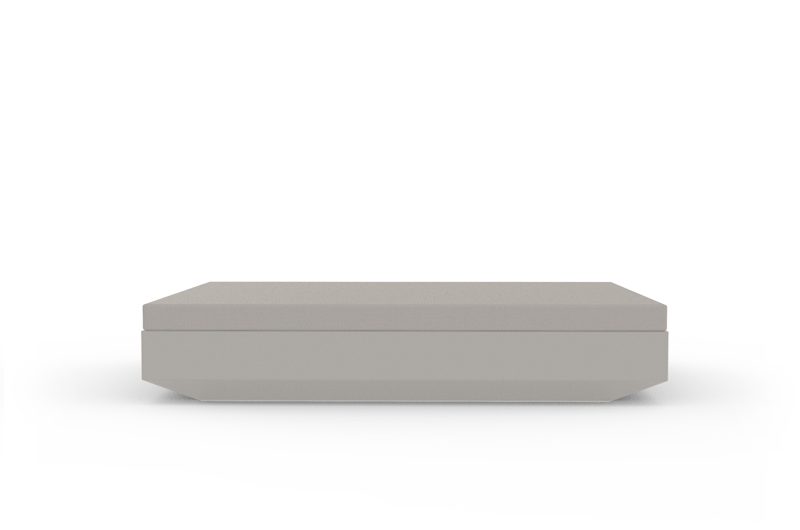 VELA is a modulate system with an elementary prismatic geometry that bases its singularity in the balance of its proportions. The elements can combine among themselves to integrate into any space. Their precise volumes create the illusion of hovering some centimetres off the floor, and when they are illuminated they are transformed into floating architectures. Vela daybed 2 reclining backrest square