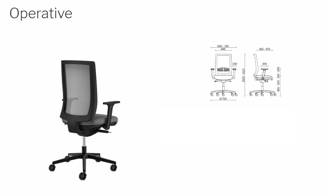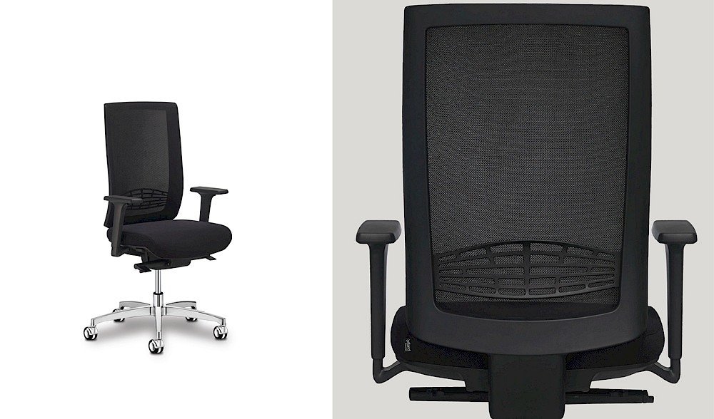 Web-on is a very comfortable office chair with mesh upholstery available in a wide range of standard colours. Five positions for the synchronised adjustment of seat and backrest, adjustable seat depth and manual adjustment of the recline tilt ensure a relaxing, ergonomic posture, ideal for long hours of daily use.