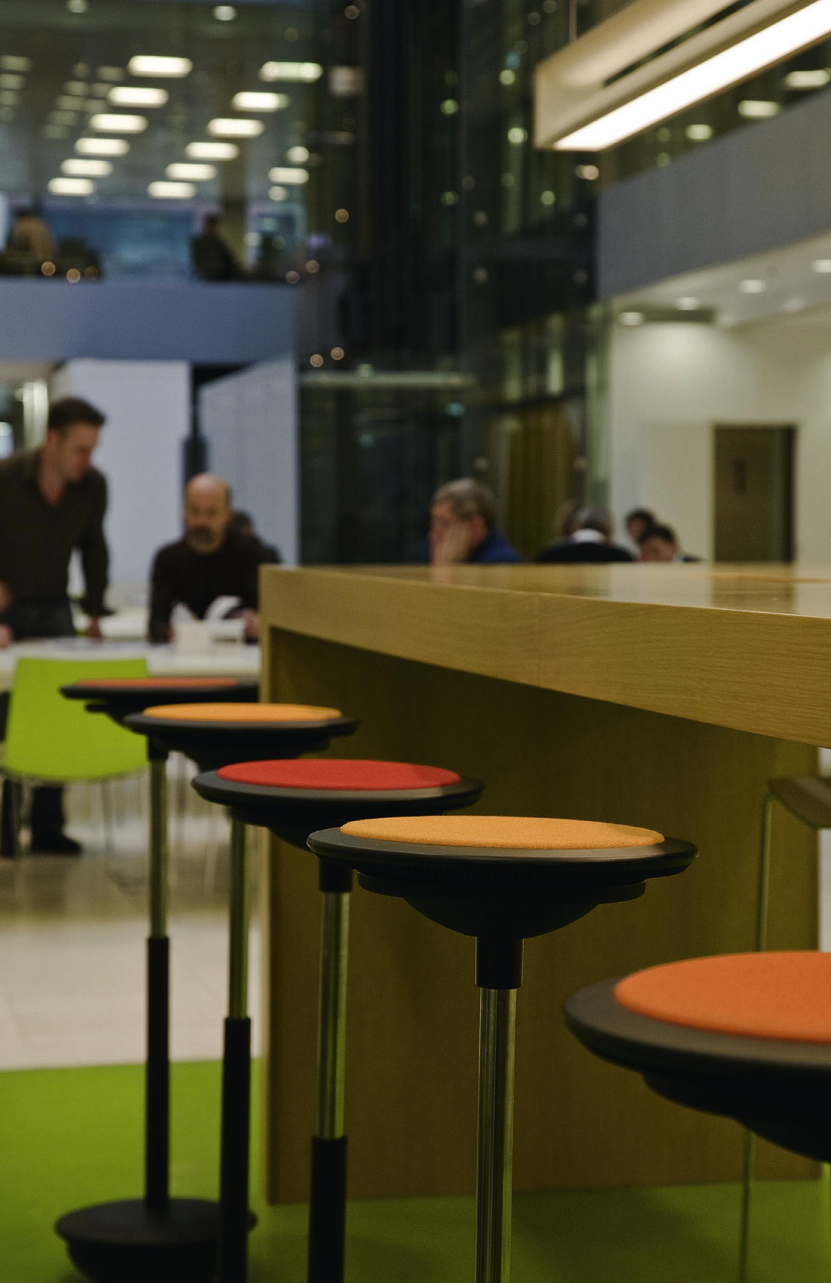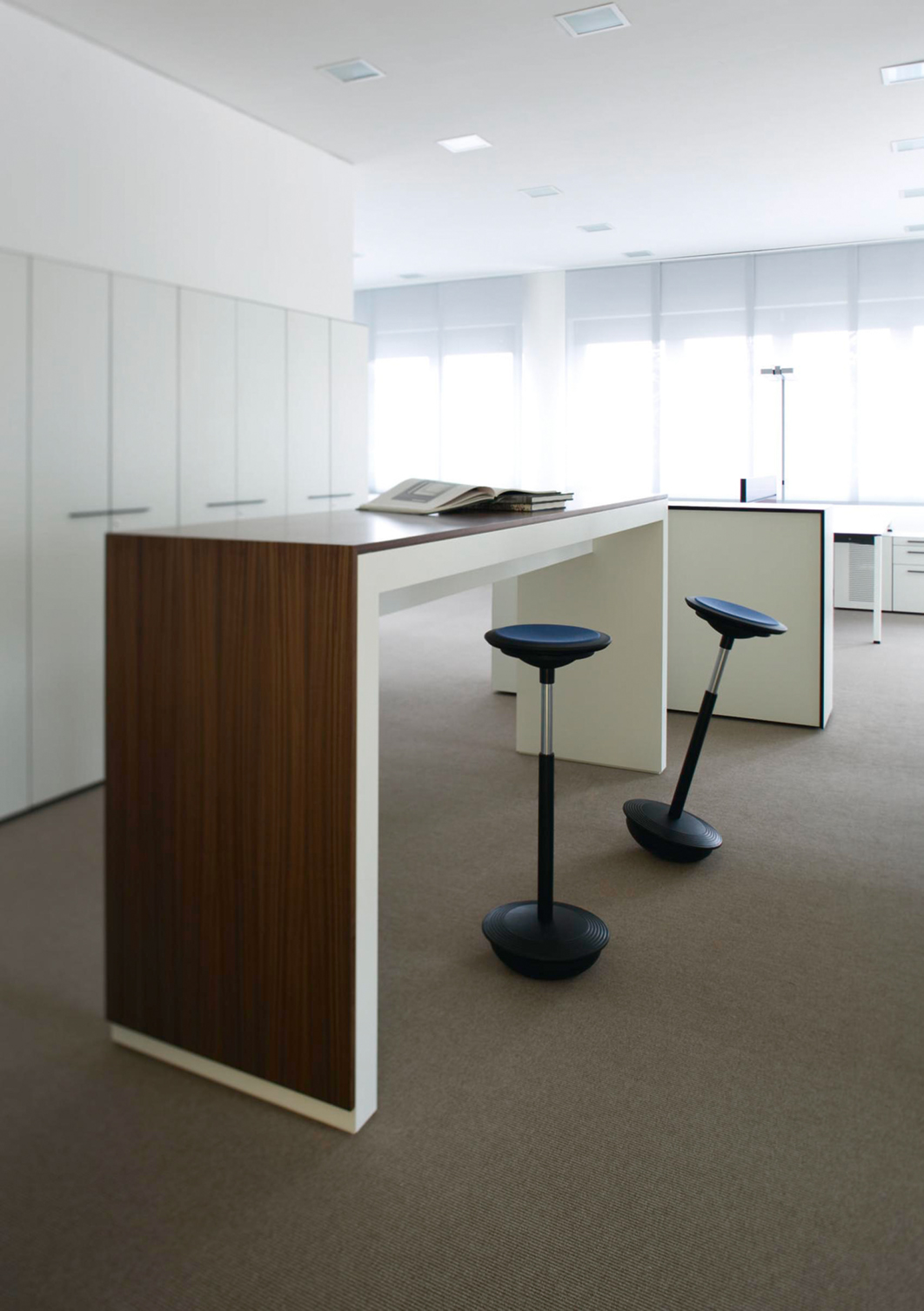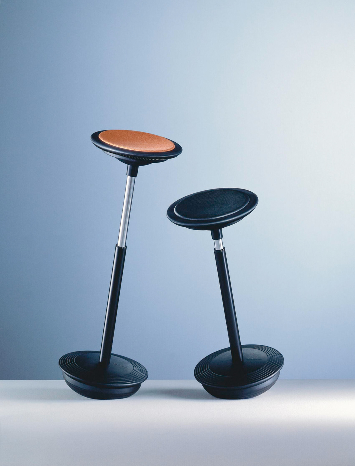 The Stitz sitting-perching stool is an exceptional piece of furniture, that involves neither sitting nor standing, but somewhere in between. This is why you do not sit on Stitz, but rest on it at a slant. As a result, your pelvis adopts an upright position, your metabolism improves, your sense of balance is enhanced and your muscles are activated without subjecting them to too much strain. The elastomer base is filled with quartz sand, so that Stitz does not topple over even when tilted. A freely accessible disc underneath the seat lets you infinitely adjust the support height with an integrated gas lift. A study carried out by the Centre for Health at the German Sport University Cologne verifies that regular use of Stitz boosts your body’s co-ordinating skills. * see all technical information