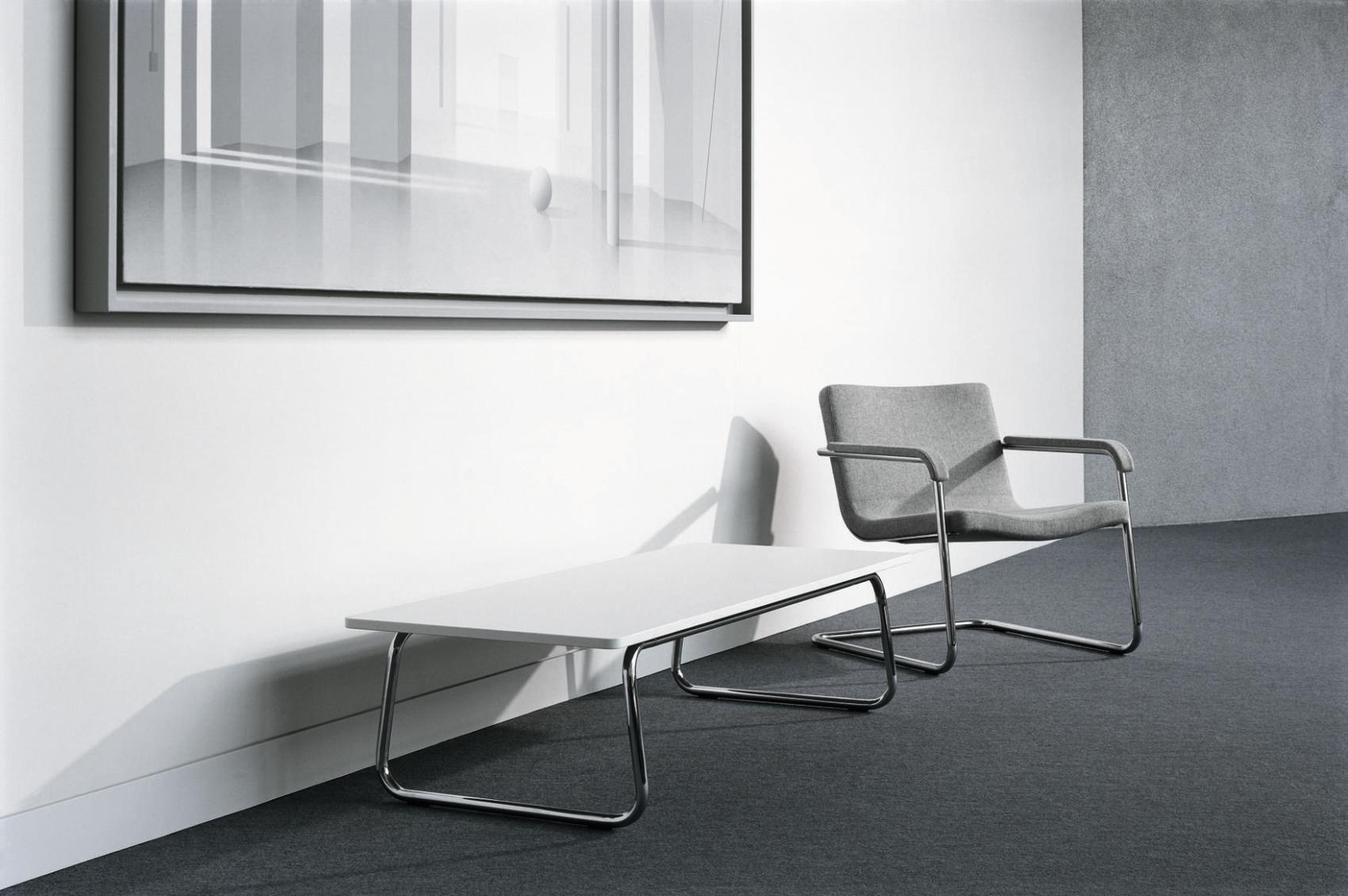 Linear and elegant, classic and distinctive, spacious and high-quality — Cura is a high-calibre, cantilever lounge chair. The design is familiar yet refreshingly different: light, sporty and — understated form aside — very inviting. It merges naturally with any interior design theme — in a foyer, a lounge or in a private setting too. Cura low tables are coordinated with the materials and design of the chairs.