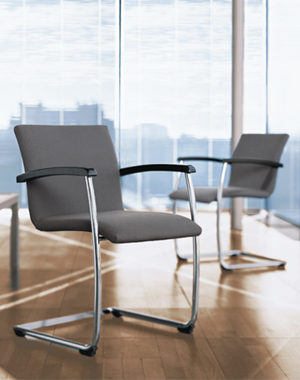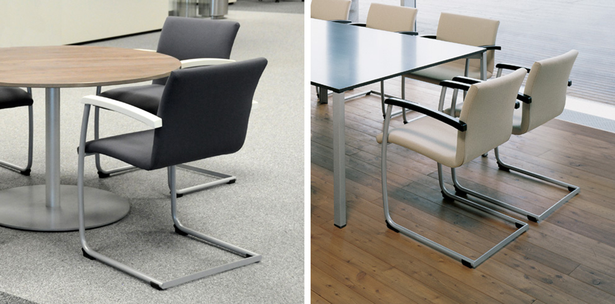 Extremely comfortable Bug cantilever chair for sitting in conference and meeting rooms, or available as an attractive visitor and side chair in the front office.