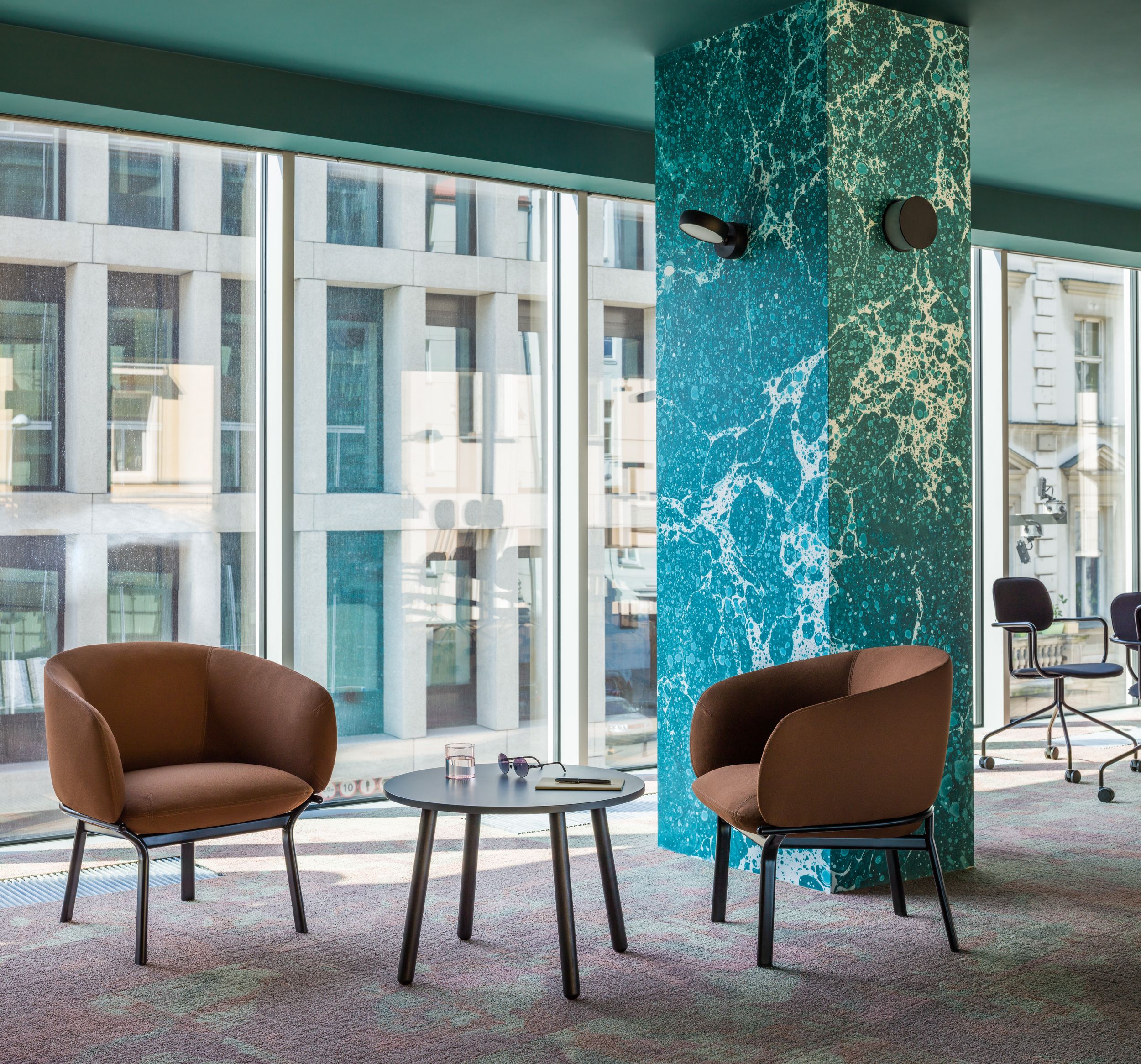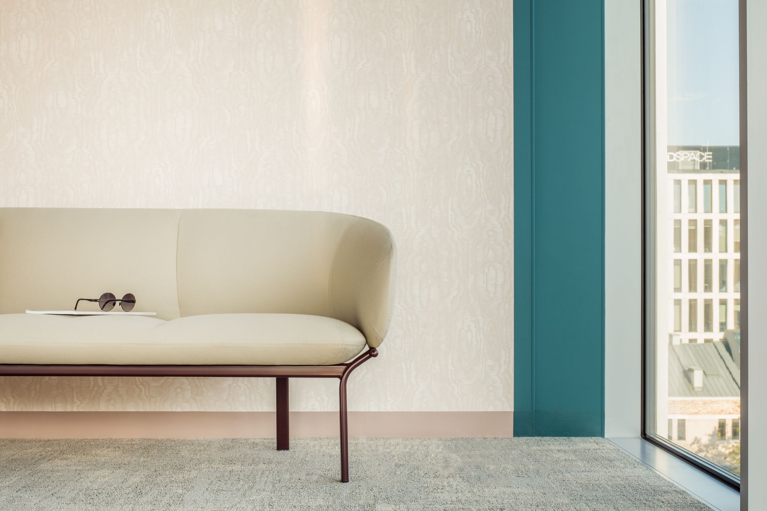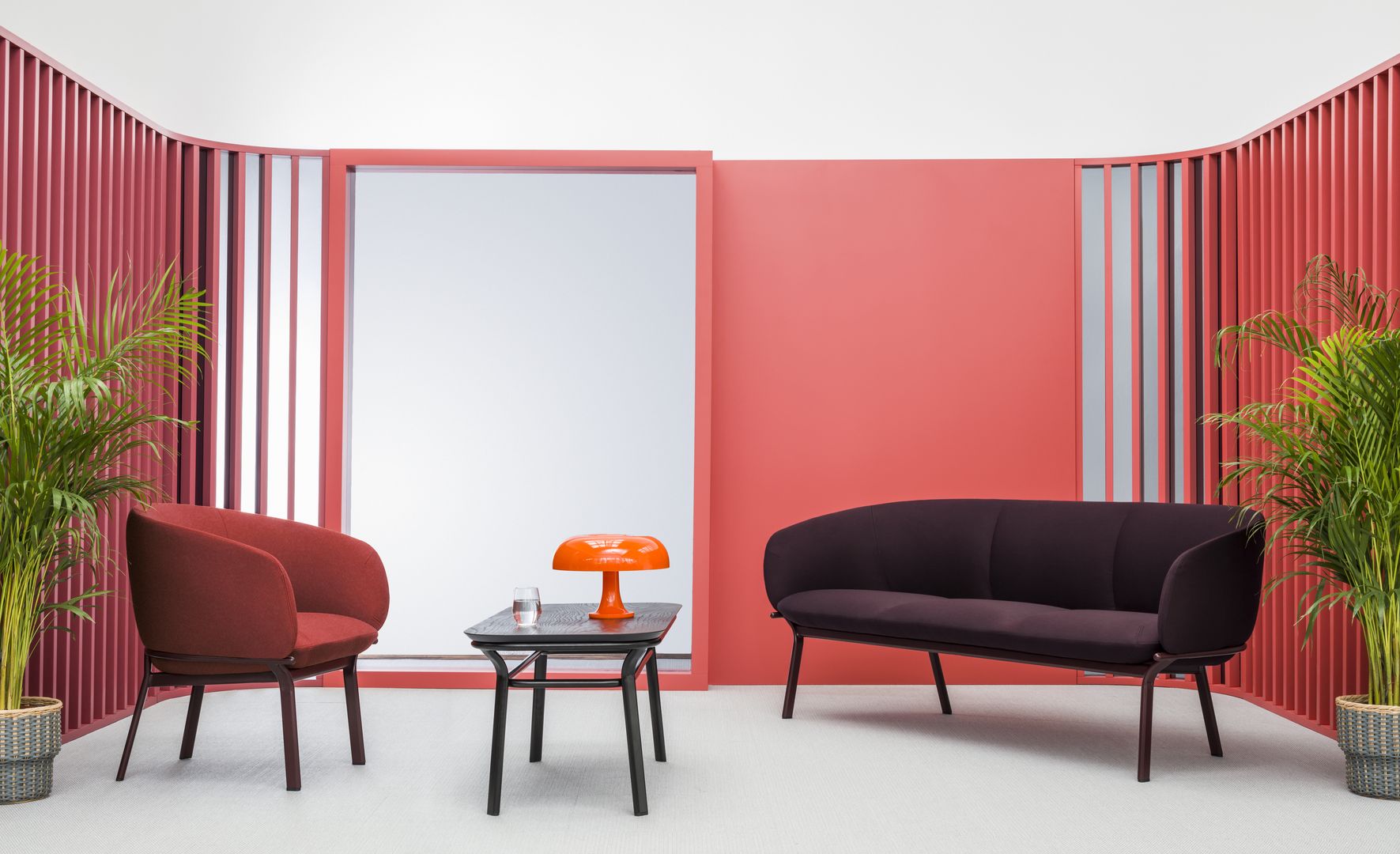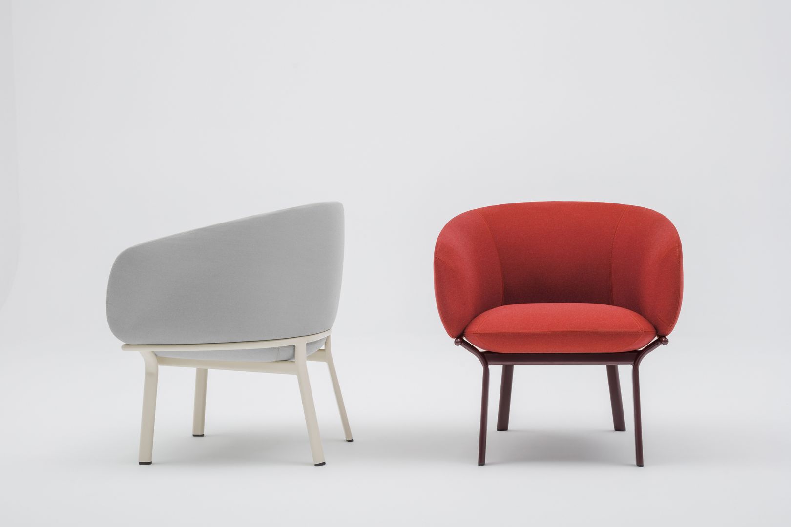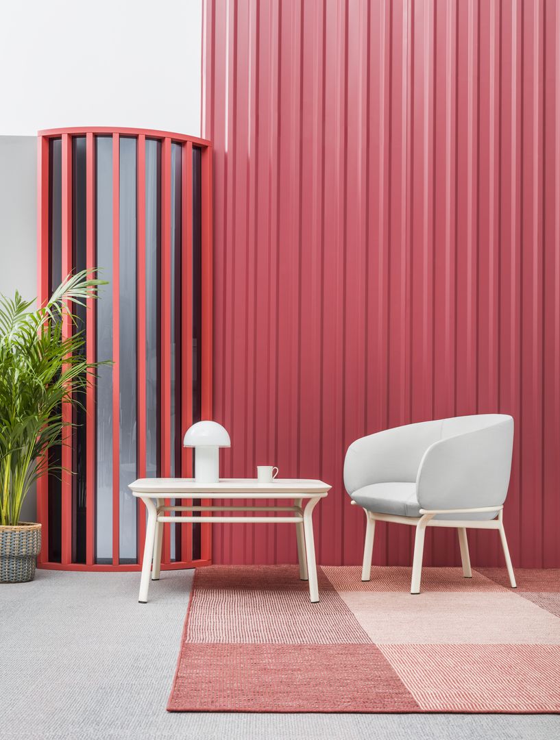 Designed to answer the demands of common areas, the Grace furniture family includes sofa, armchair and two tables. Thanks to the combination of distinct seat lines and minimalist frame style it gains a sculptural character.