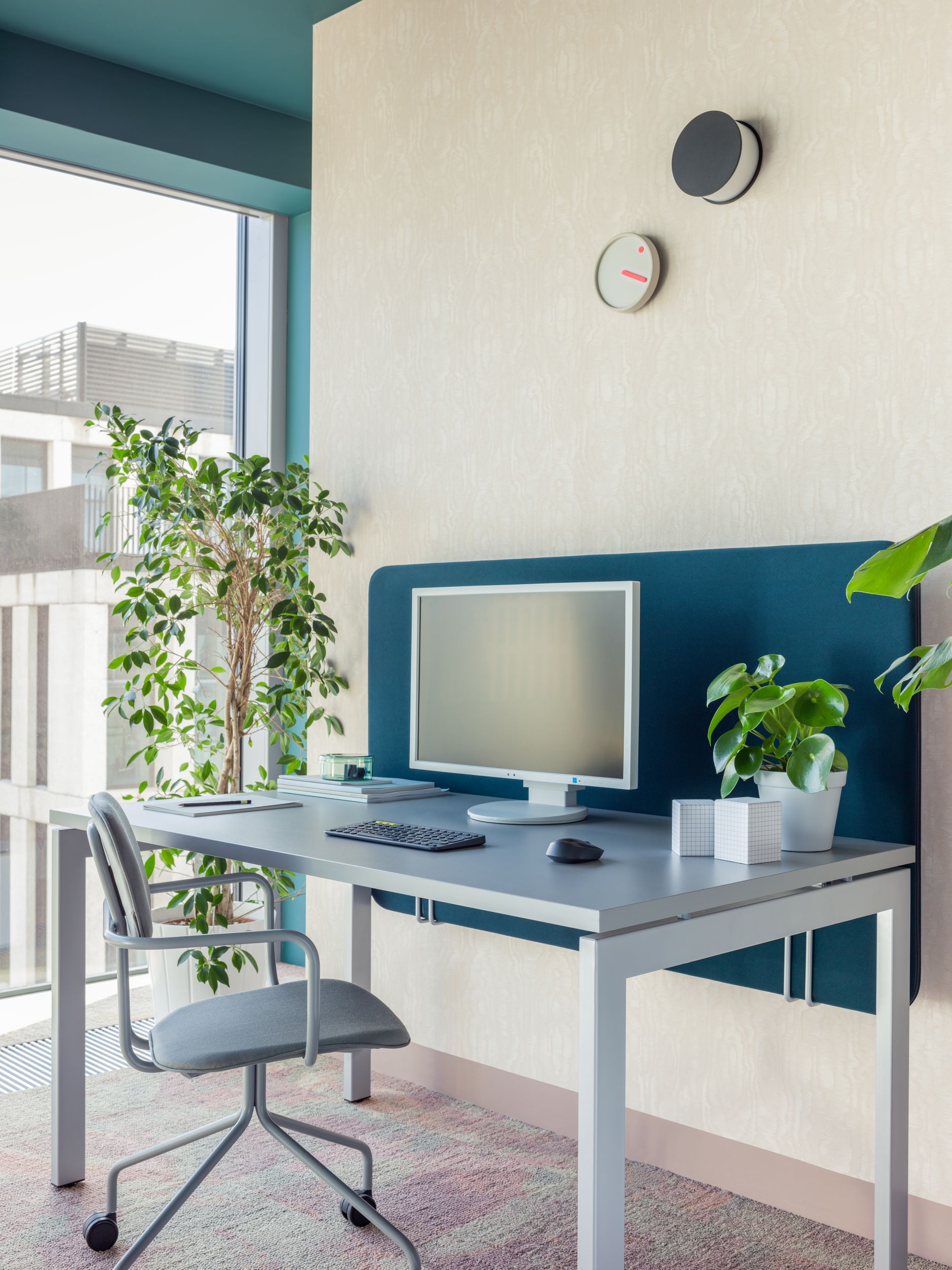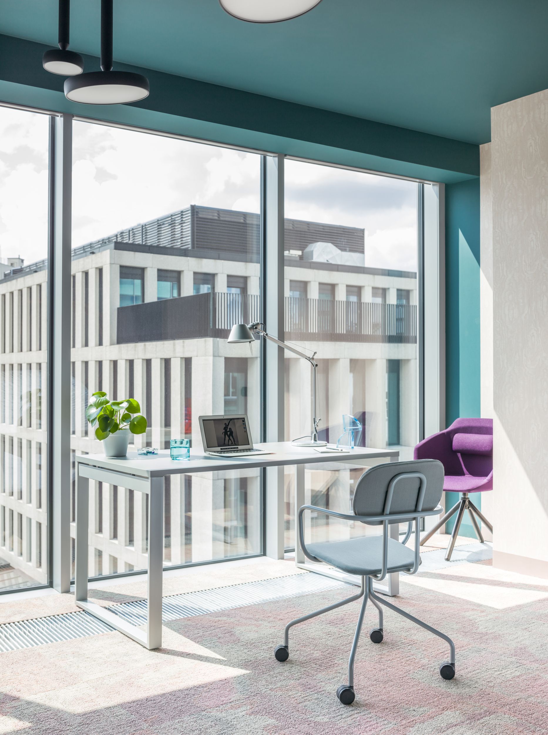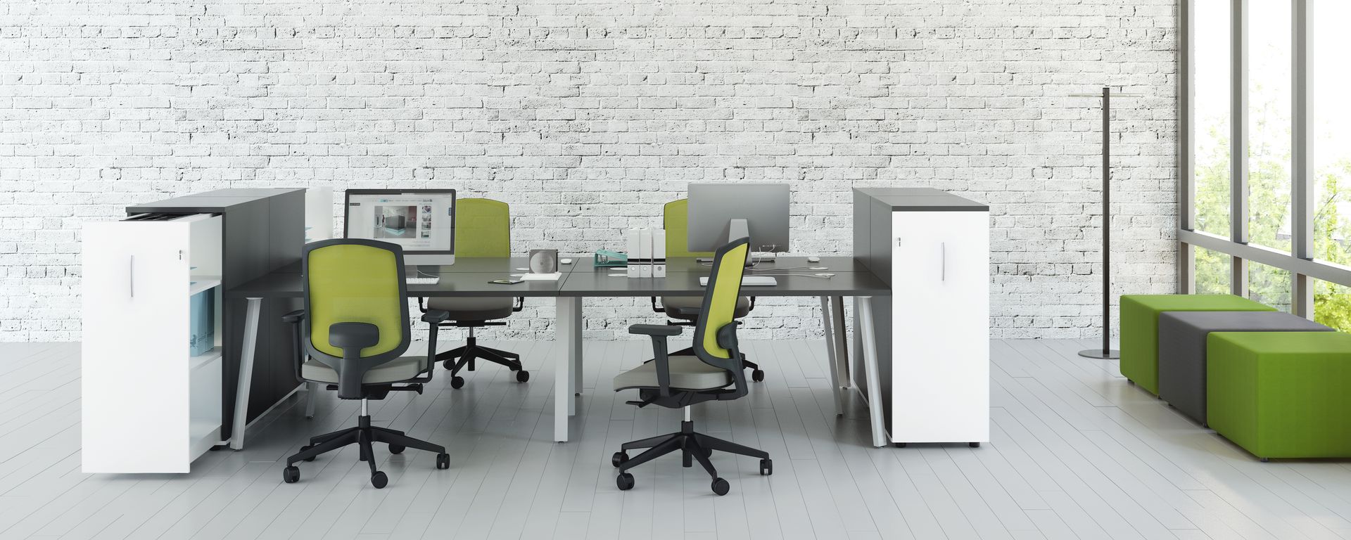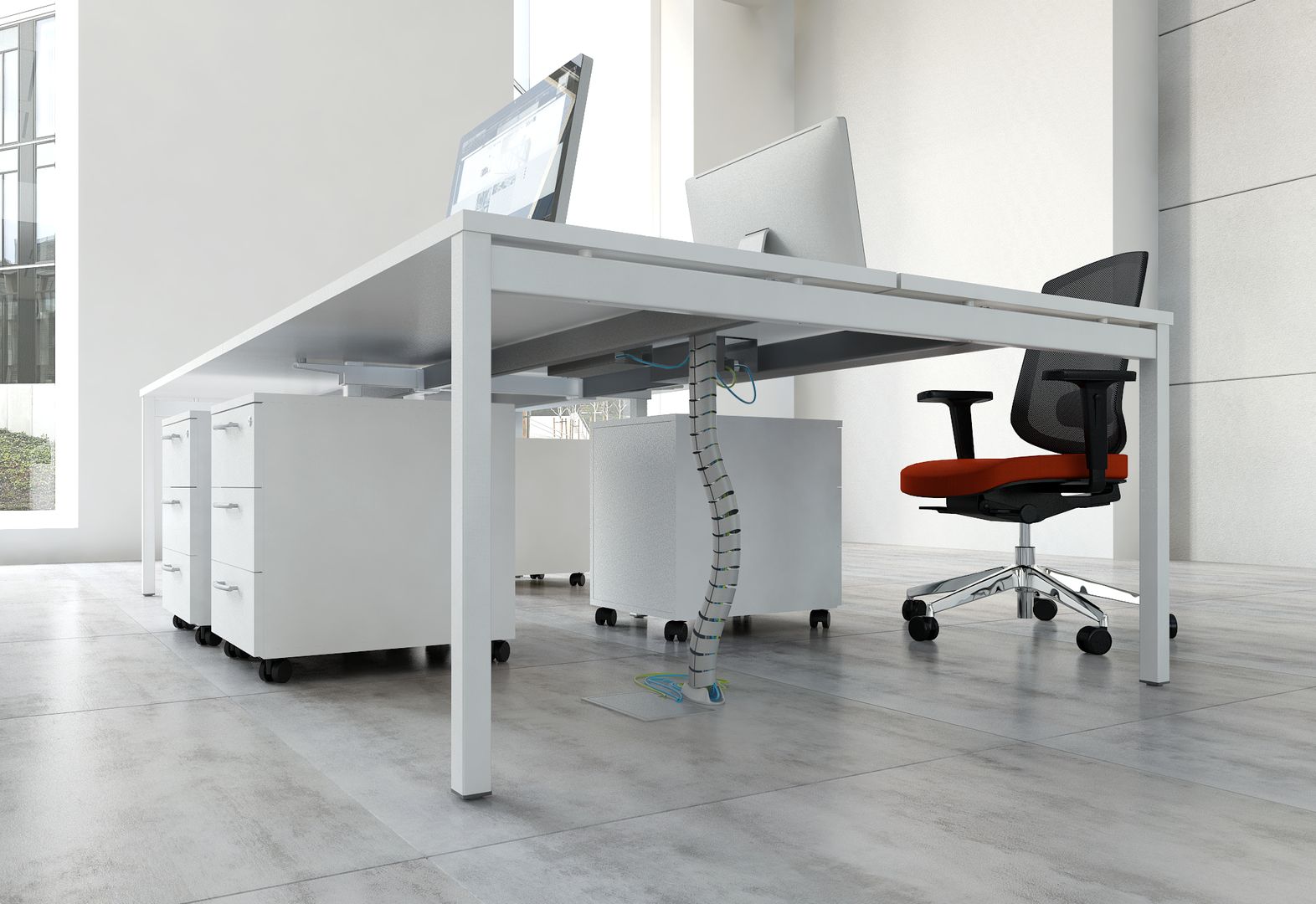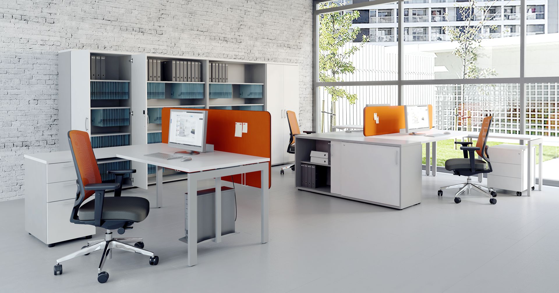 OGI_NOGI_N — A wide range of desks, tables, storages and pedestals ensure high functionality and meet the requirements of all customers. Dividing panels in warm, vibrant colors provide a homelike atmosphere. The outer cover of legs allows for easy cables installation. Both hidden cables and ergonomic desktops, make work much easier and comfortable.