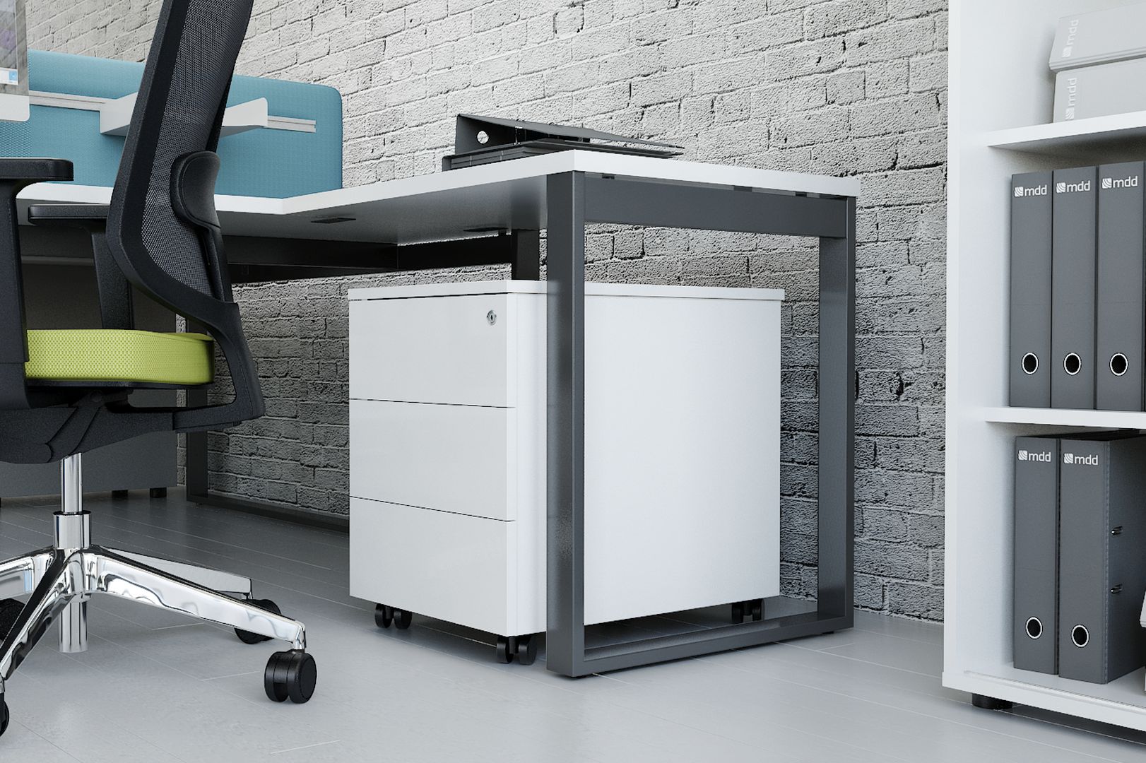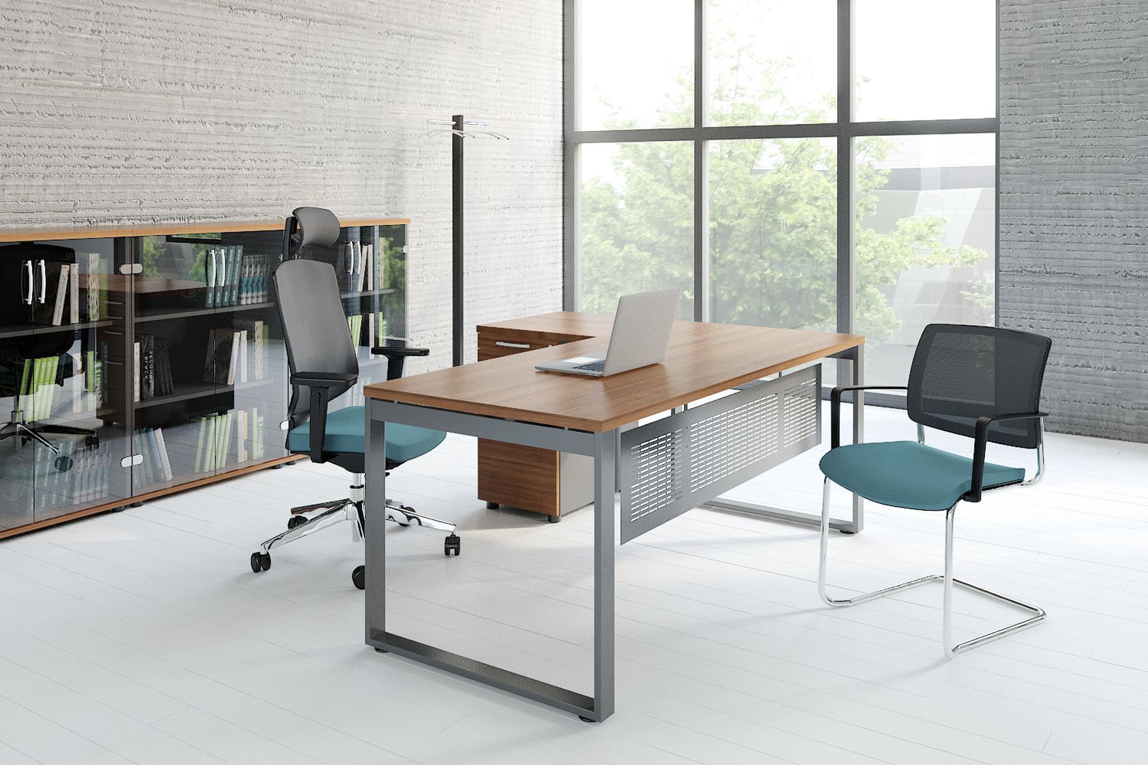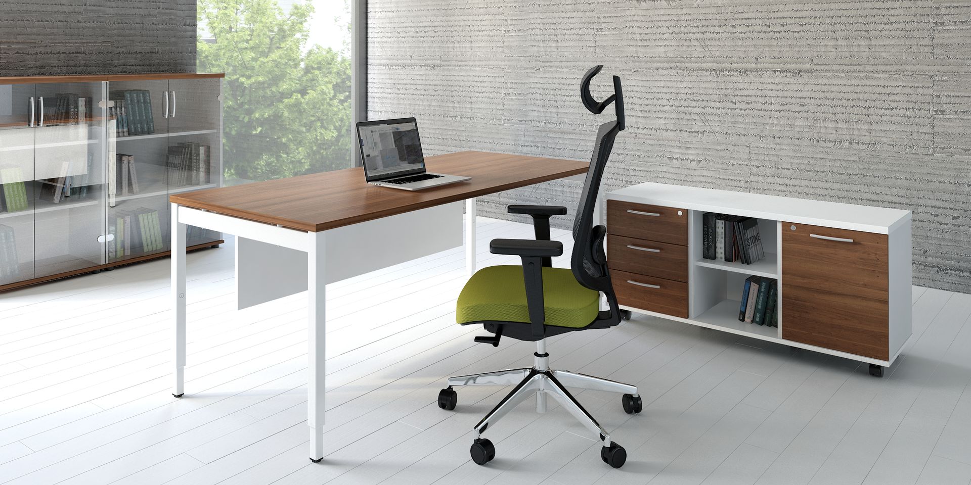 OGI_QOGI_Q — a simple, classic collection of desks for minimalists who value comfort. The system is available in a managerial version with an integral pedestal, supporting the desk construction. It allows you to keep your office in order. Office organizational flow is enhanced. The top of the desk is available in various colors including beech, Canadian oak, chestnut, polar birch, cocoa, white pastel and lowland nut. Leg options include aluminium (satinato) and white gloss. OGI Q is a collection of desks, pedestals and storages solutions- a comprehensive array for any well-organized office.
