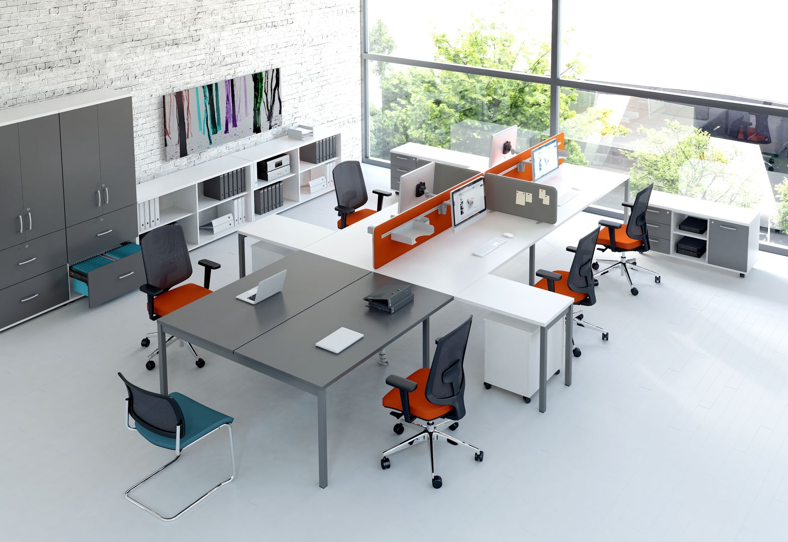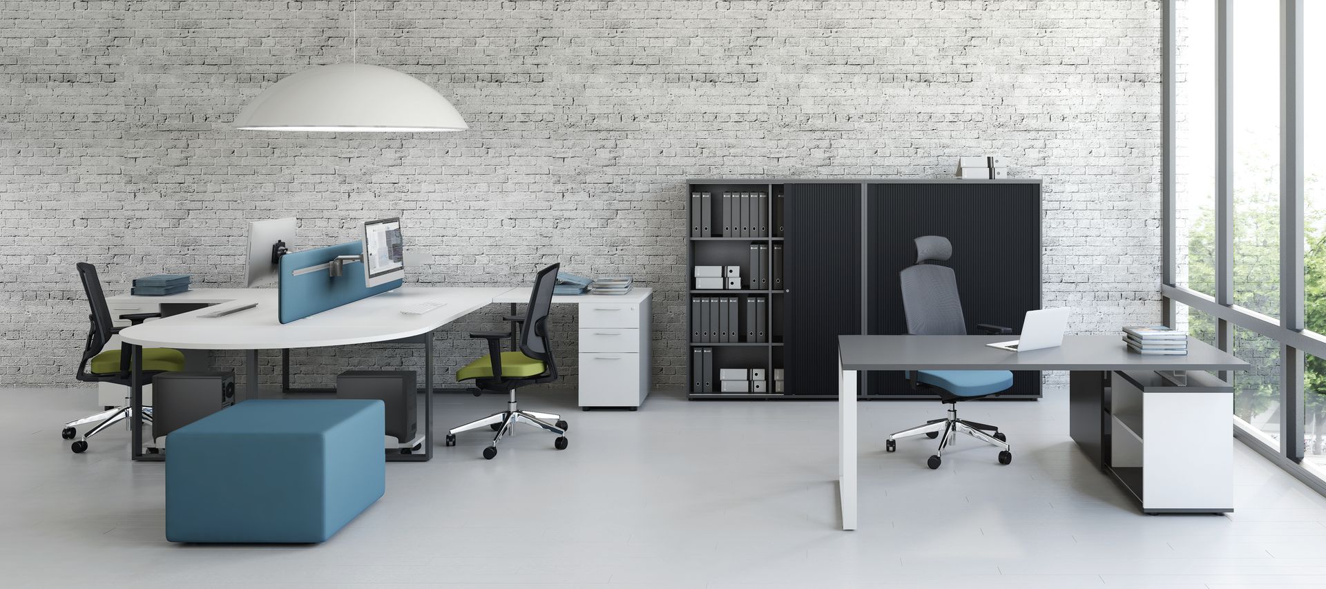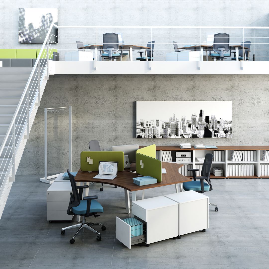 OGI_VOGI_V — OGI system allows to organize and change the arrangement of any office. A wide range of desks in different shapes make it possible to create single and multi-stations. The simple shapes of furniture create harmony and order. This allows you to concentrate better at your work.