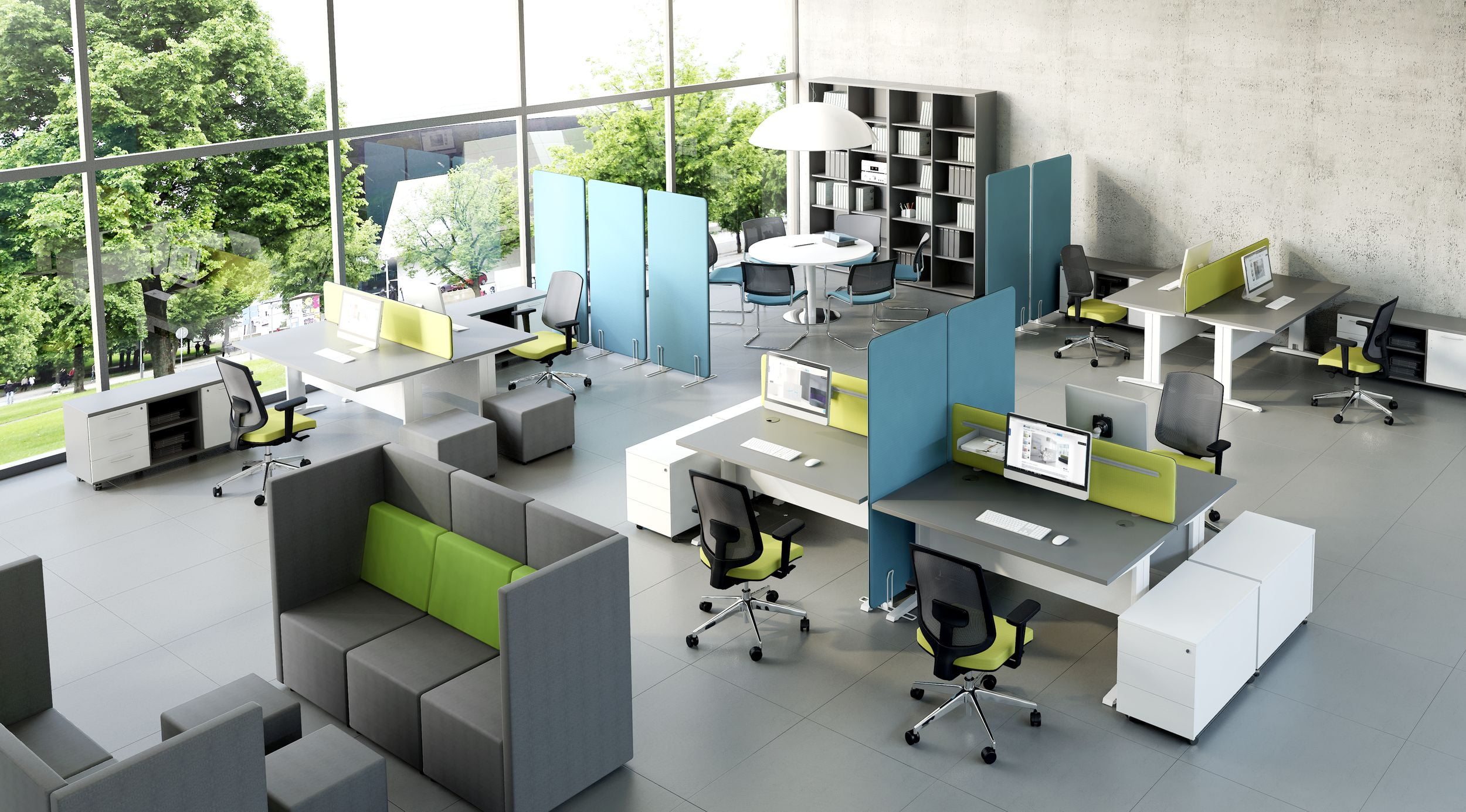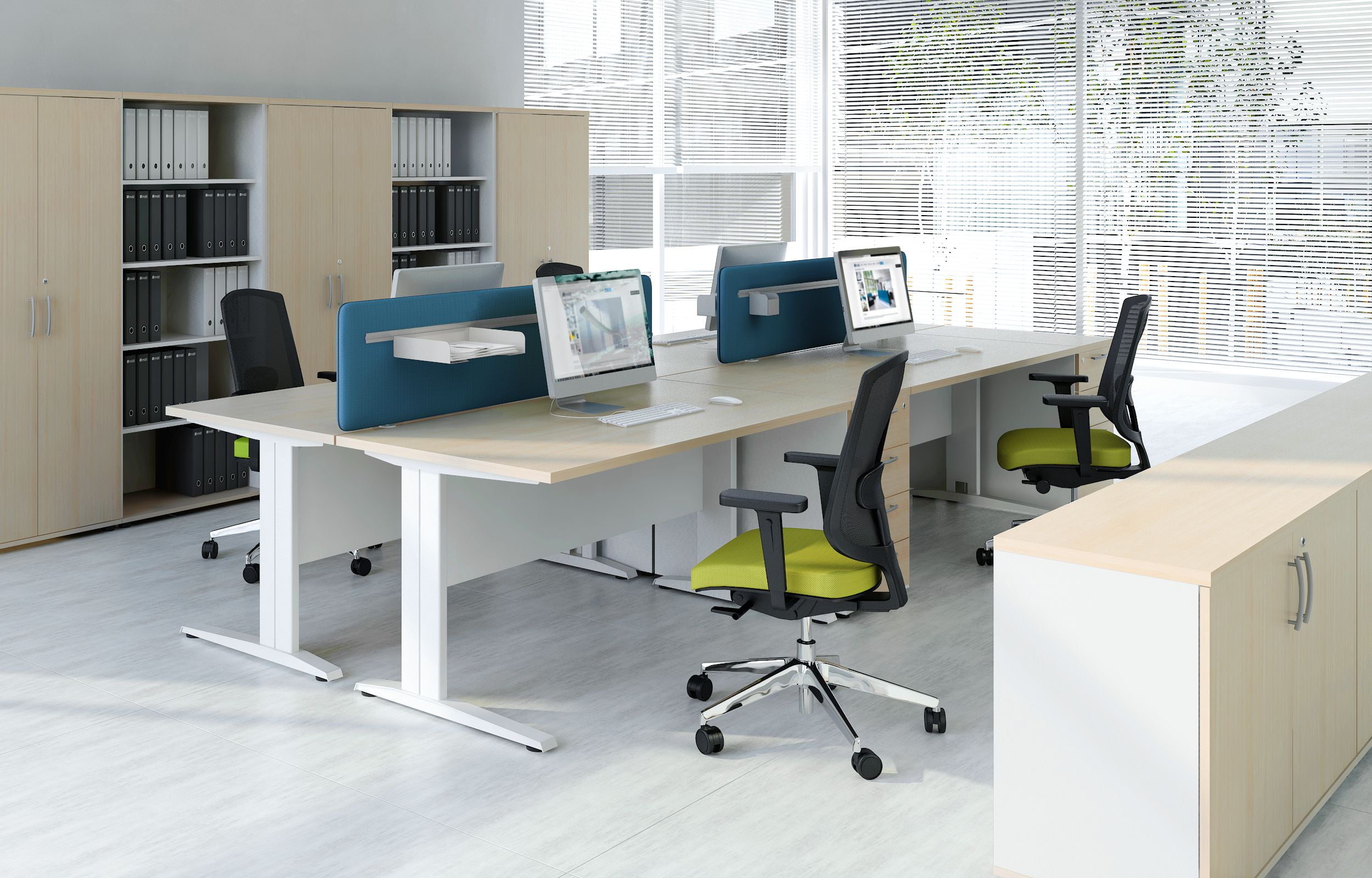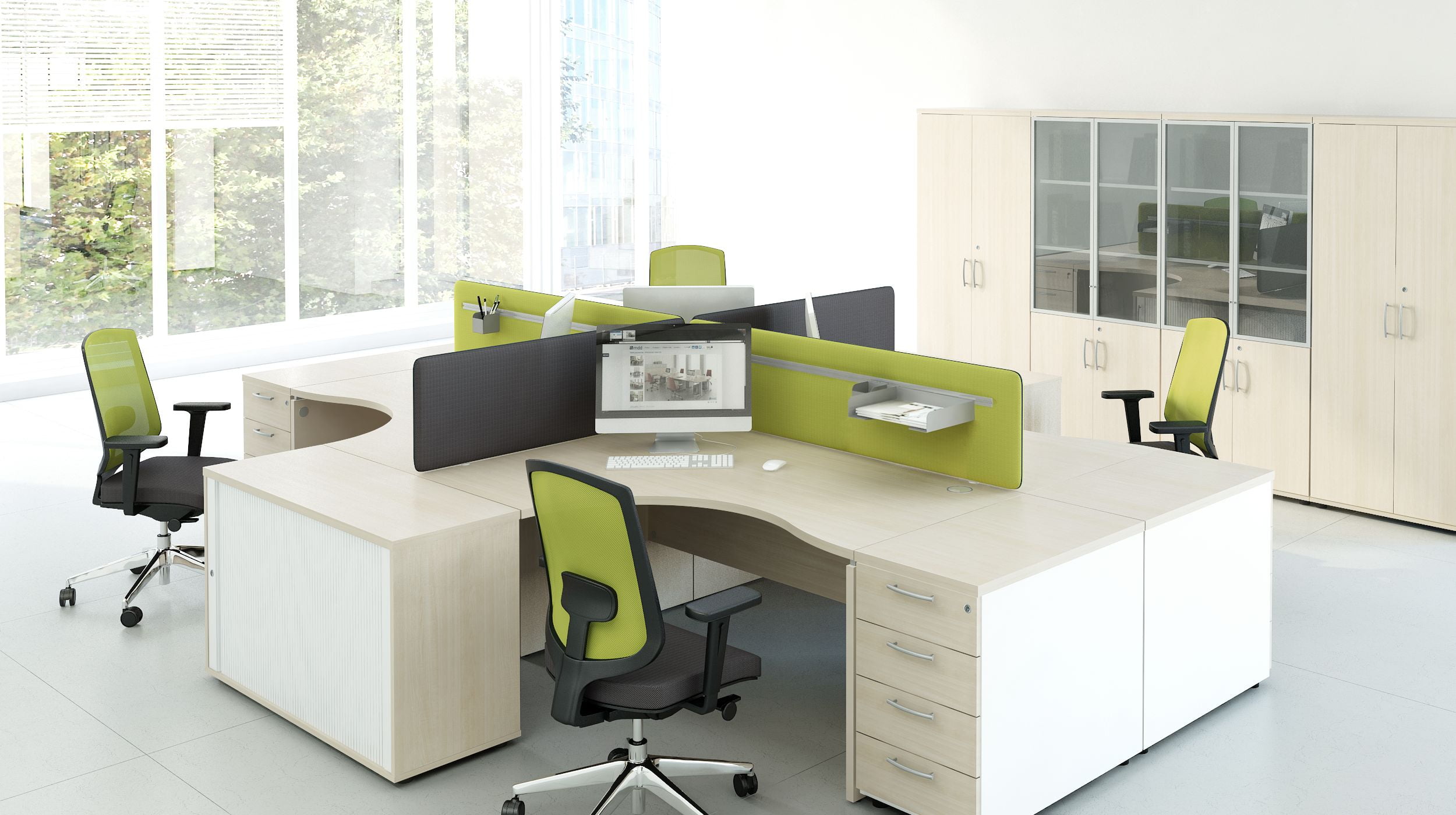 OGI_VOGI_V — OGI system allows to organize and change the arrangement of any office. A wide range of desks in different shapes make it possible to create single and multi-stations. The simple shapes of furniture create harmony and order. This allows you to concentrate better at your work.