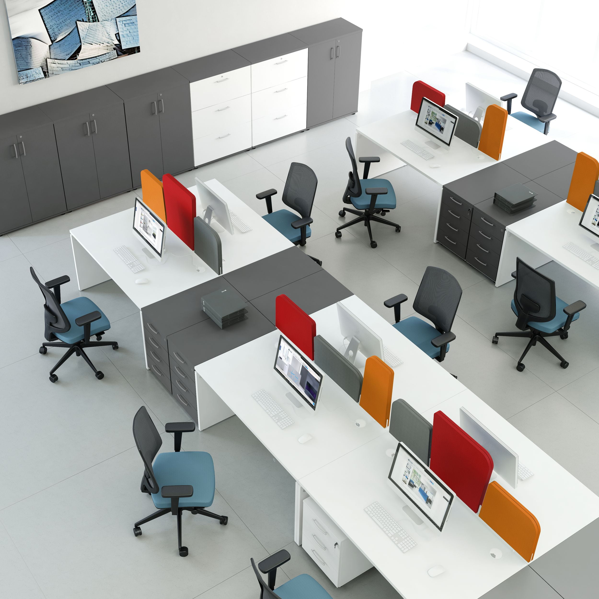 OGI_YOGI_Y — Well-organized workplace allows instant exchange of information and working in team. OGI open space collection enables you to create interesting color compositions from combining plates, fabric and metal. The modularity of the system allows you to create simple solutions of the multi-station. Cabinets with sliding and tambour door are perfect especially in small working areas.