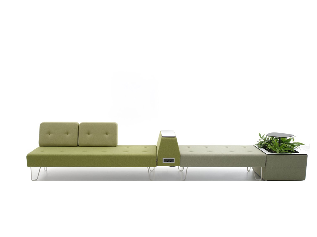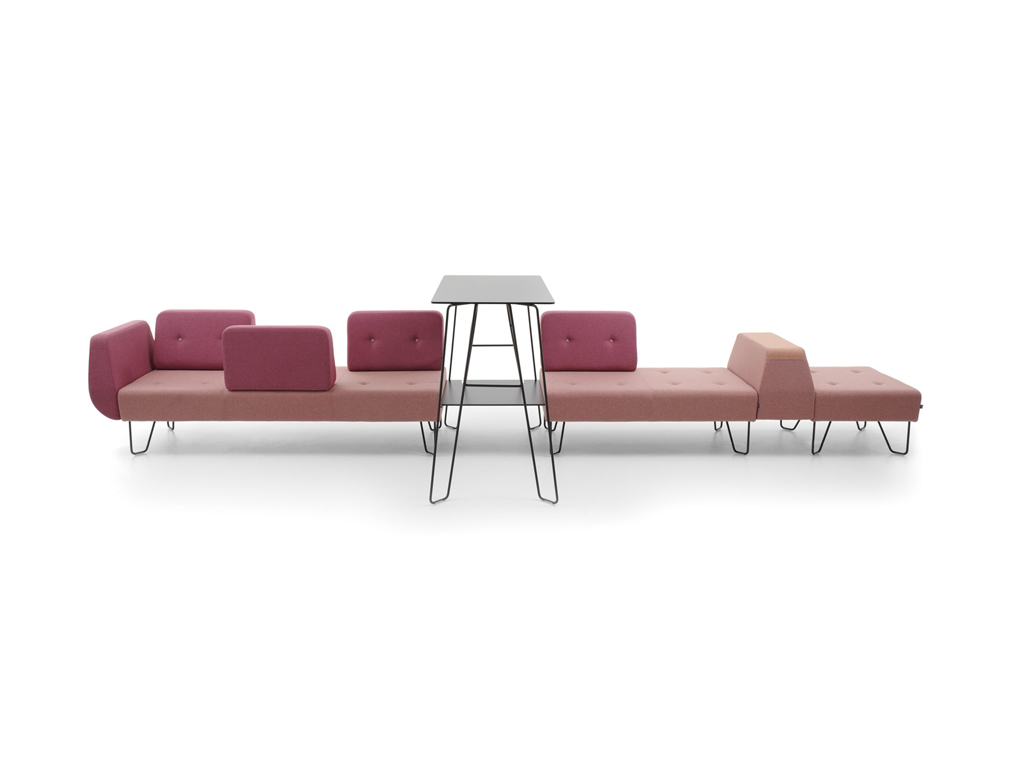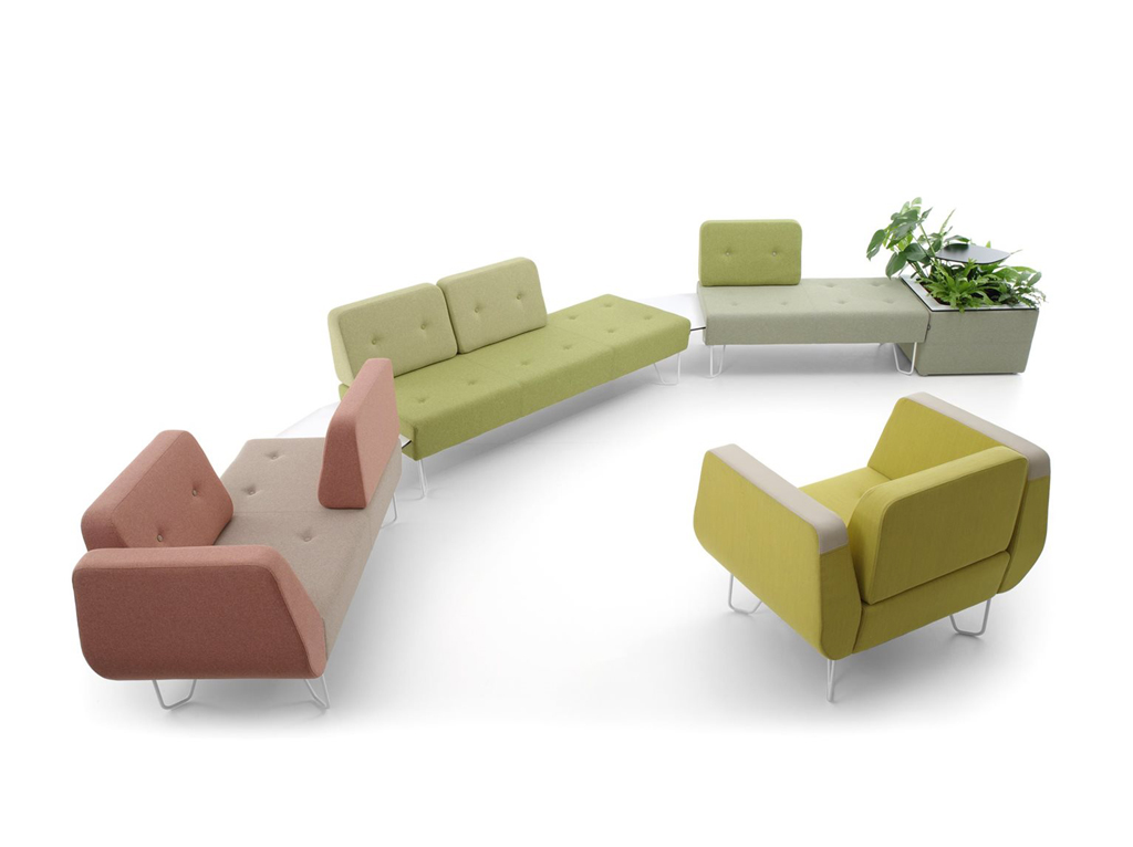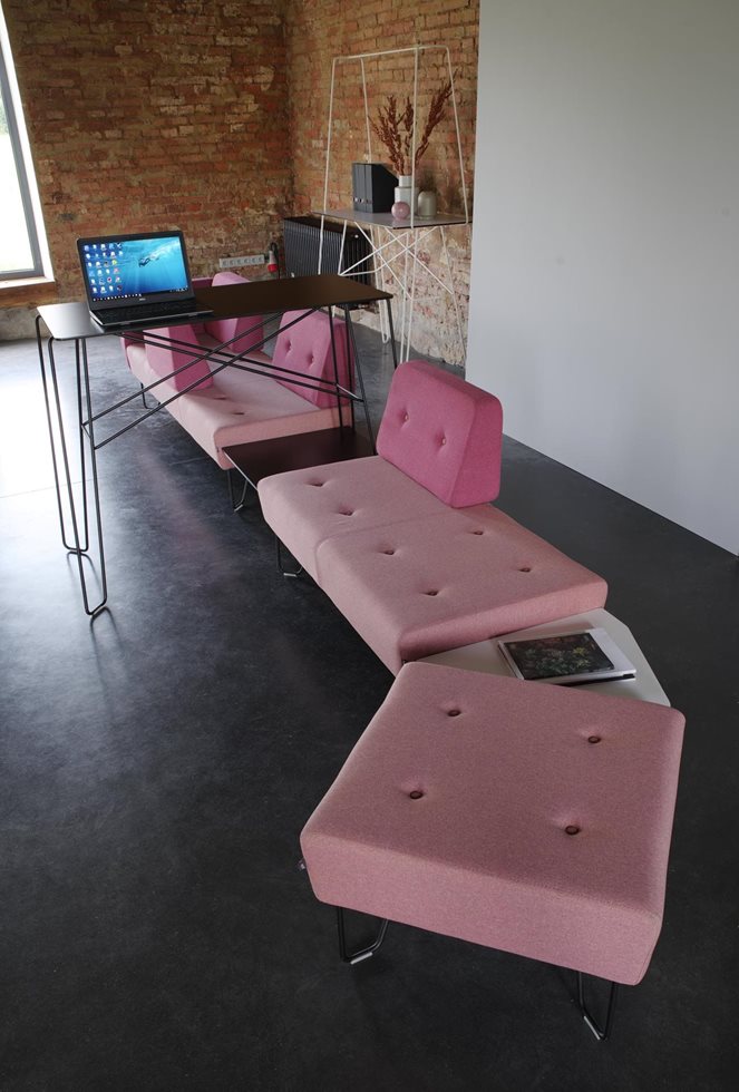 What distinguishes the U_FLOE collection is its modularity that enables making an infinite number of arrangements with different shapes and dimensions. This collection is available with a metal or wooden framework. The collection comprises a one-person armchair, two- and three-person sofas and module elements with or without backrests. This collection was complemented by high tables and shelves for plants that perfectly supplement the interior by creating a warm feel and comfortable and ergonomic conditions for work or relax. This collection is designed for home interiors, lobbies, waiting rooms, chill zones, meeting points, restaurants, receptions and public spaces.