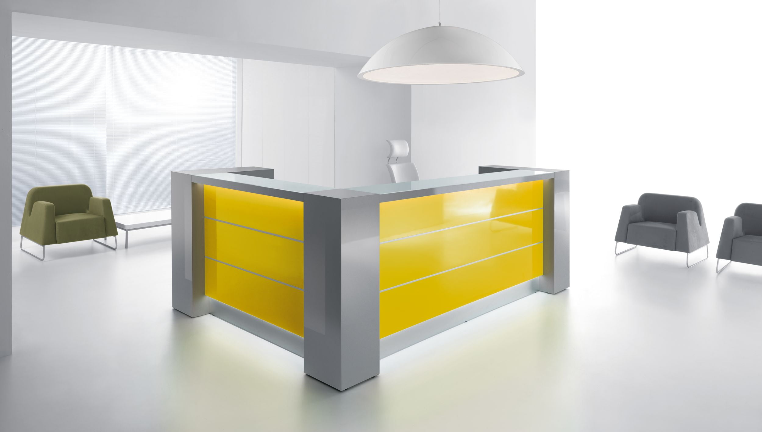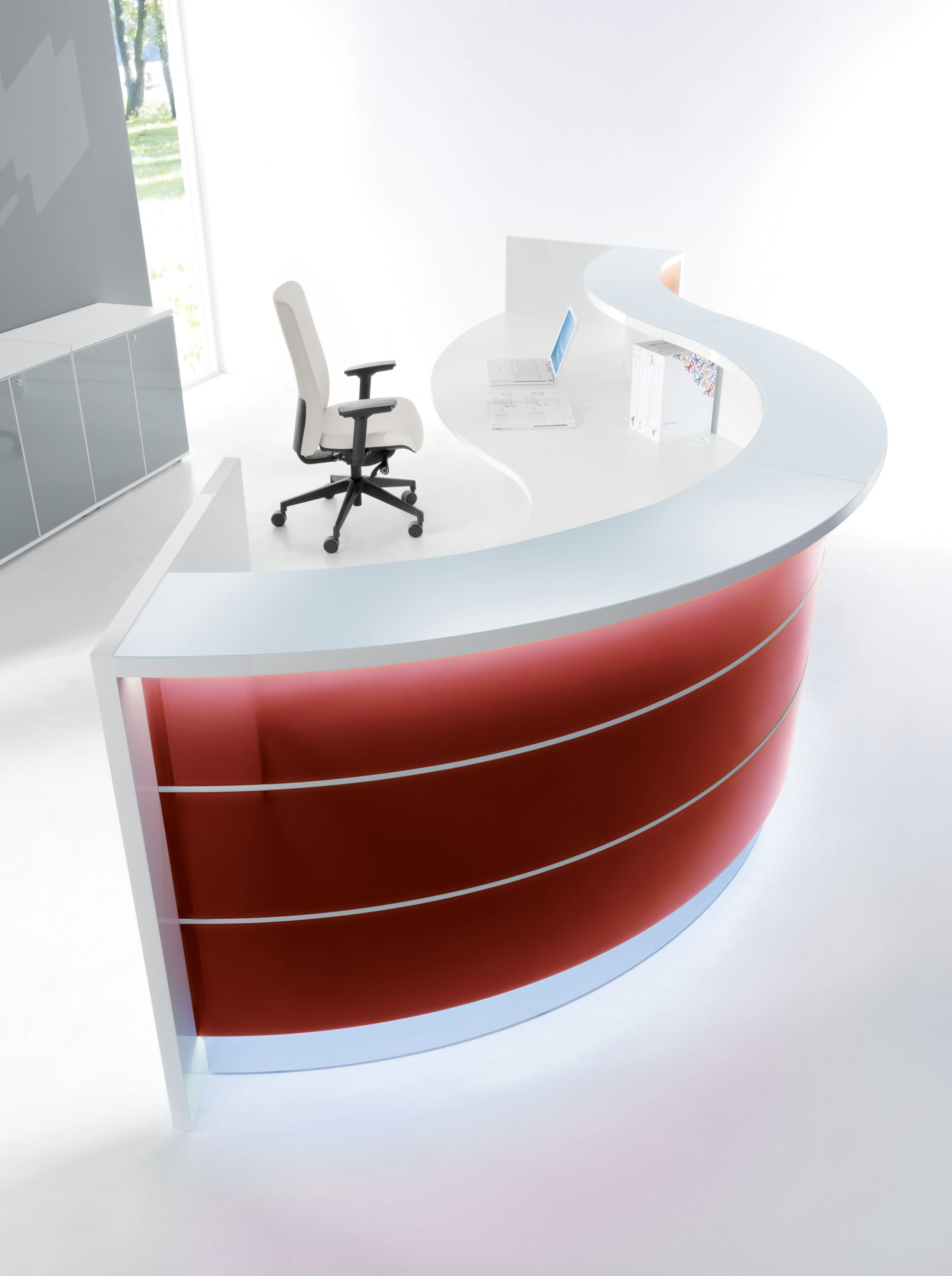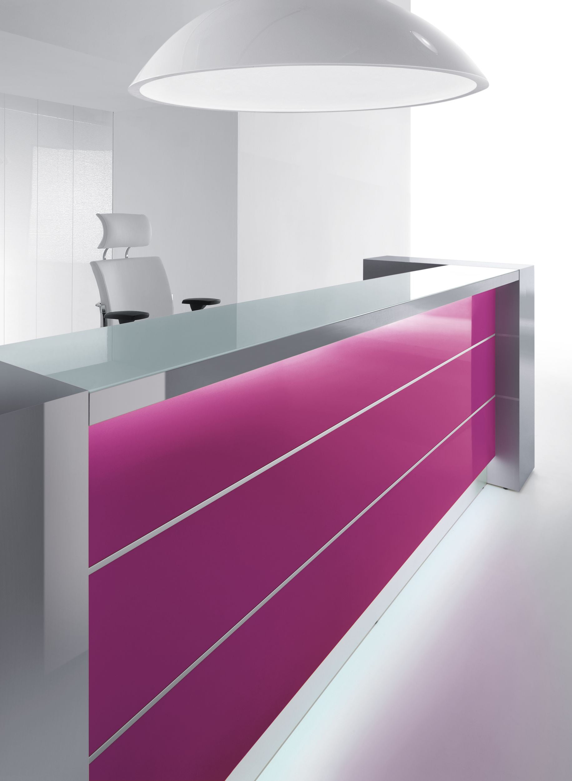 A visually attractive combination of glass, aluminium and glossy laminate create an elegant, resistible integrity. Modular construction lets us extend the units to our liking and alleviates the needs for medical and customer service centers. Extendable countertop is an additional option and can be used by people with disabilities.