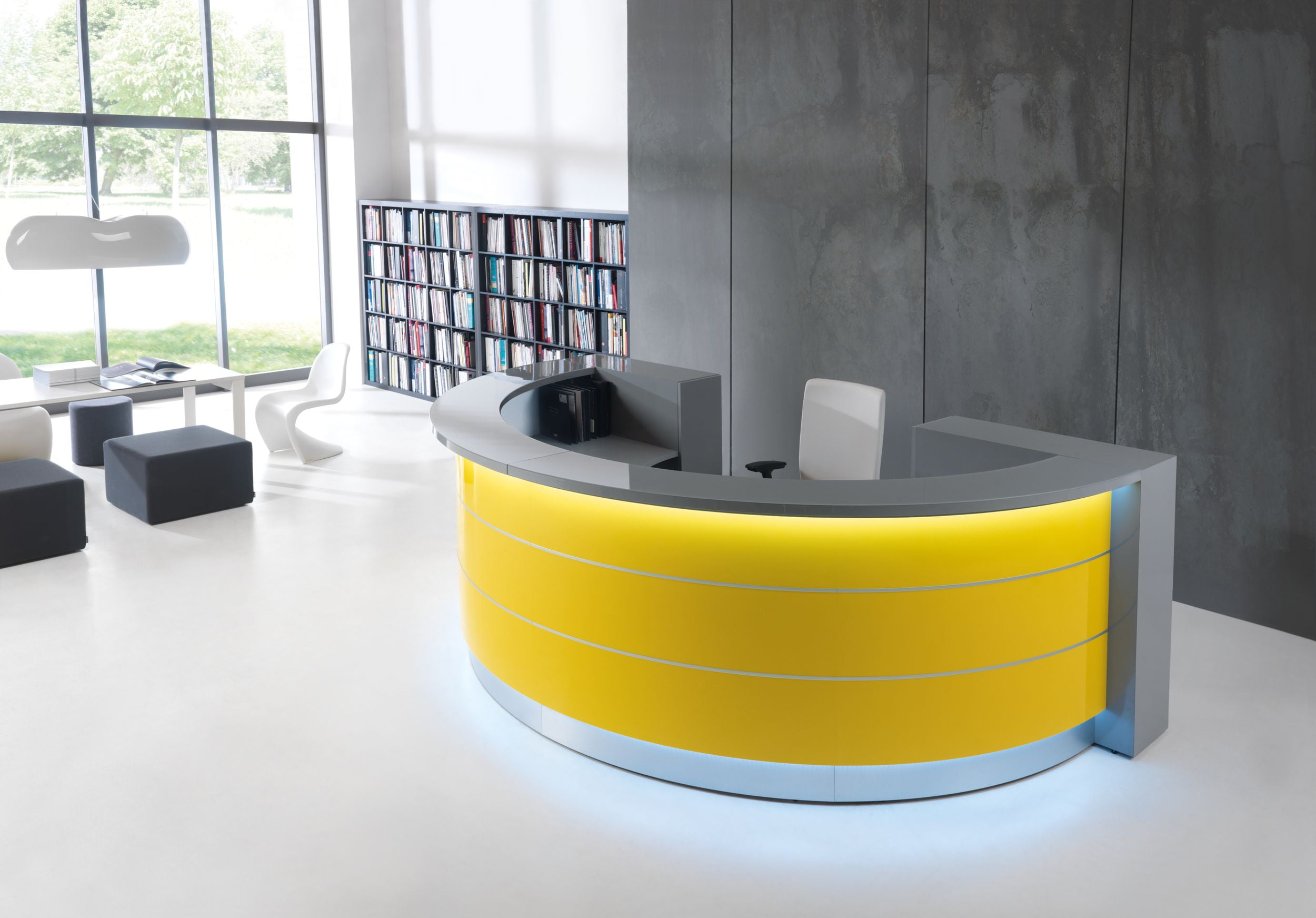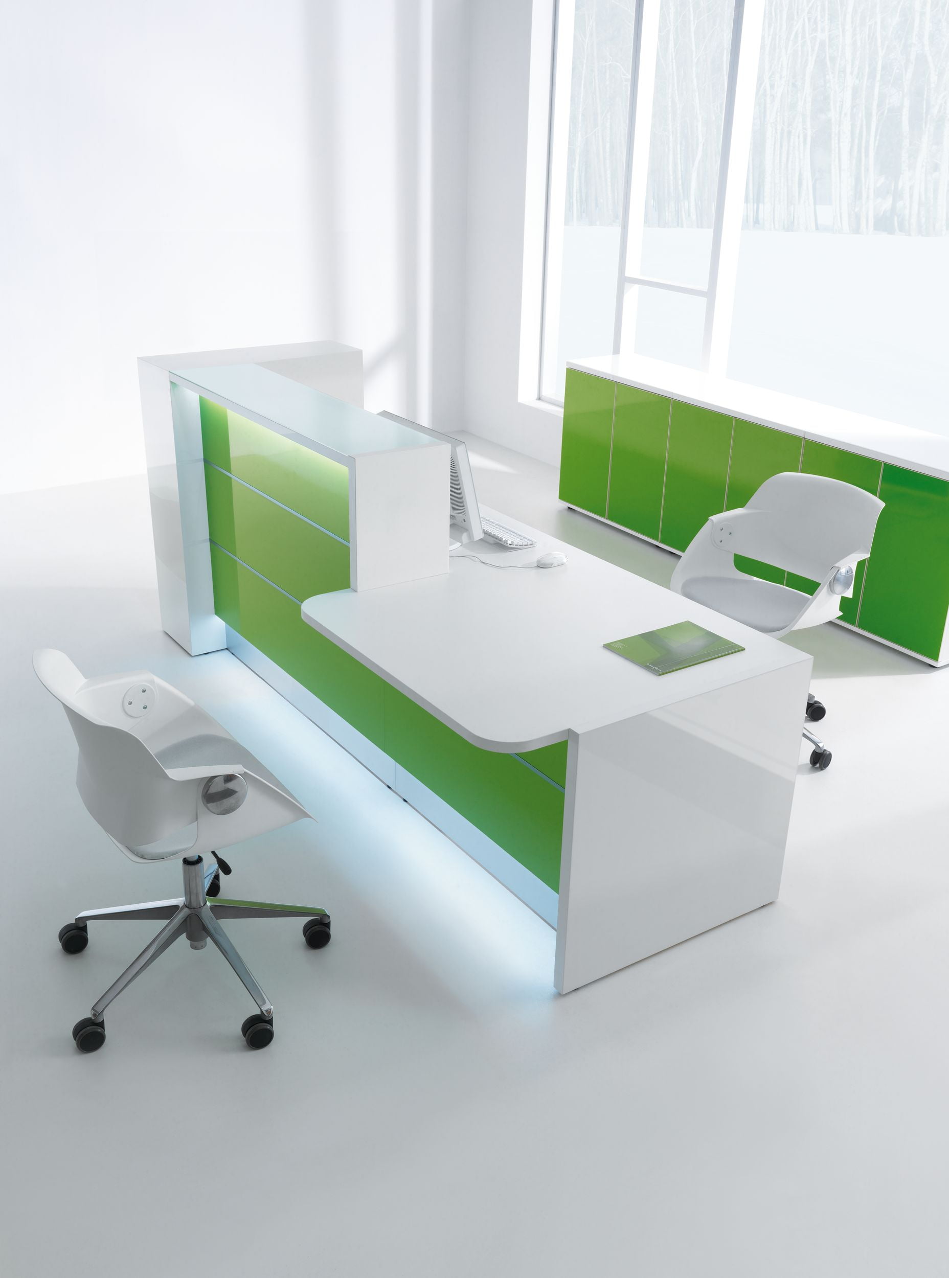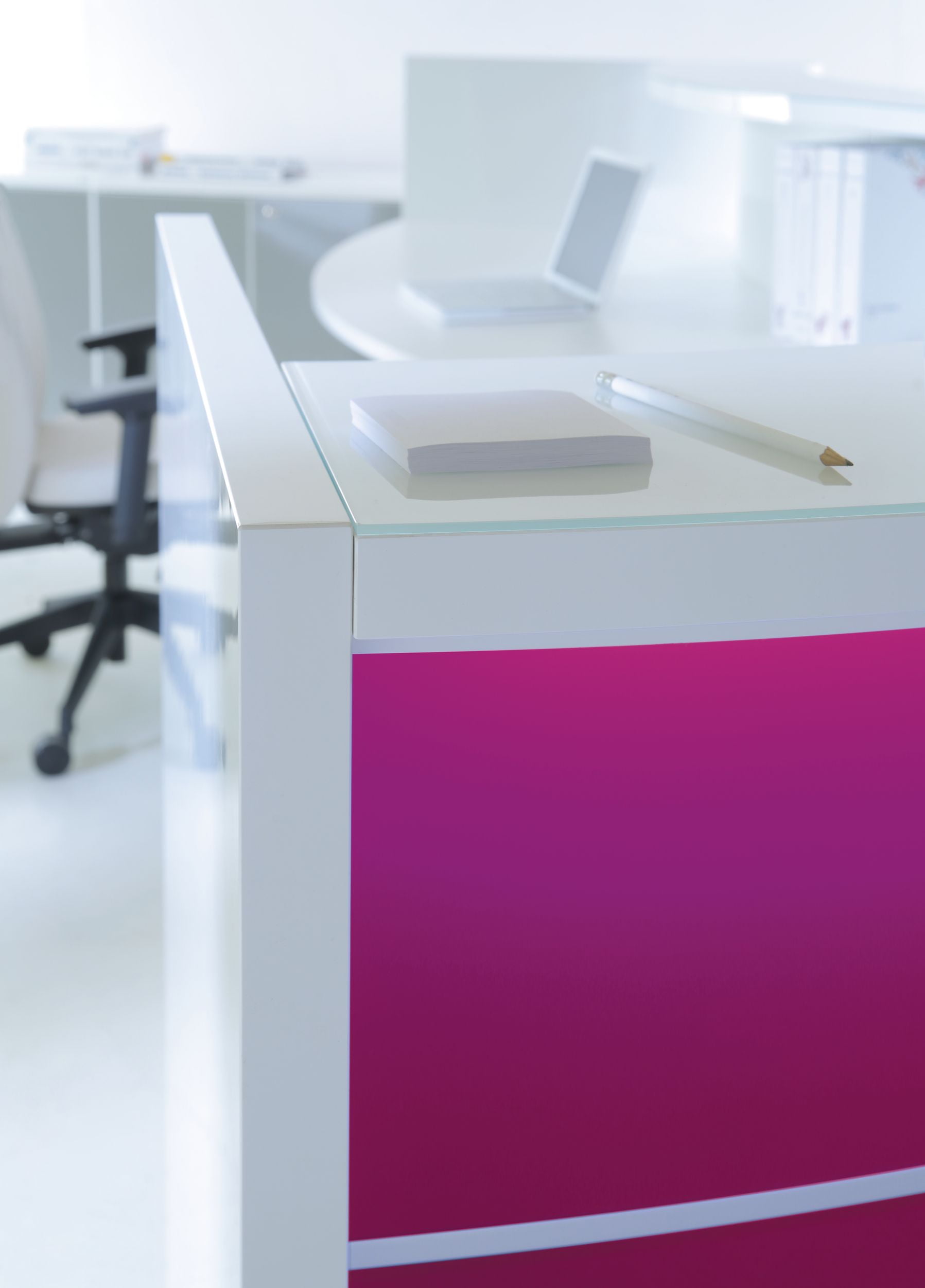 A visually attractive combination of glass, aluminium and glossy laminate create an elegant, resistible integrity. Modular construction lets us extend the units to our liking and alleviates the needs for medical and customer service centers. Extendable countertop is an additional option and can be used by people with disabilities.