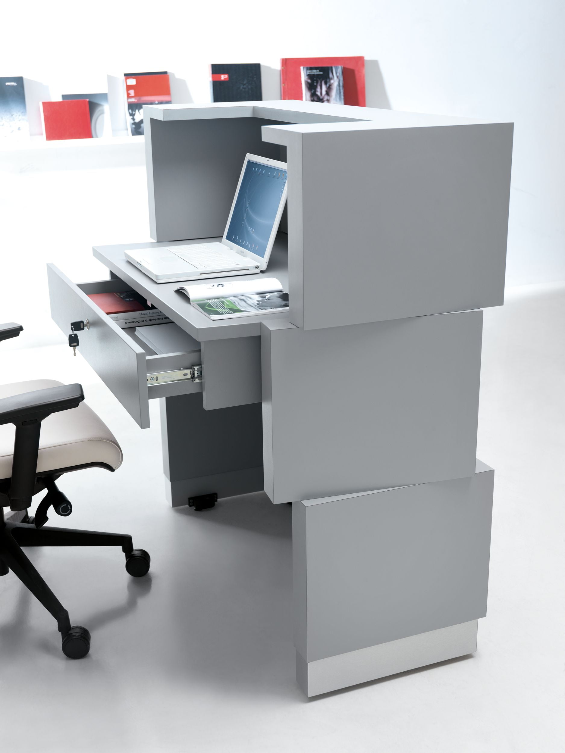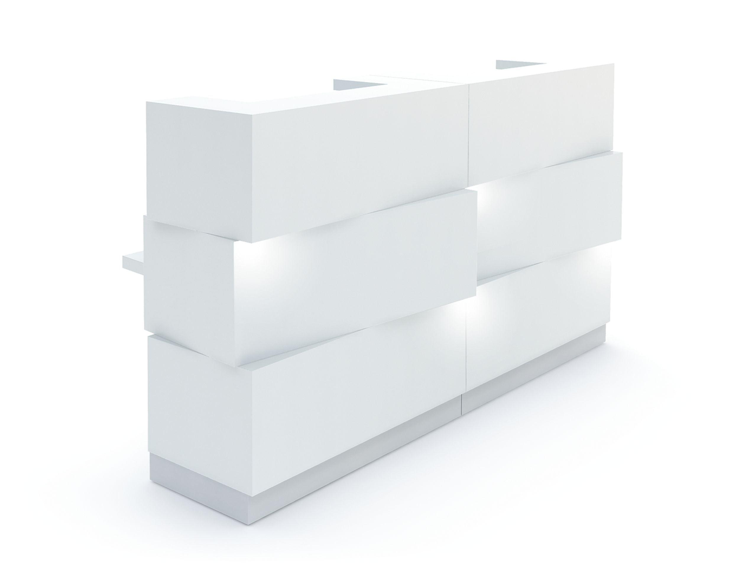 The form of three rectangular elements catches the eye and works in harmony with Minimalism. LED lighting installed in respective modules play an aesthetic and a practical role. Cold lighting is elegant, stimulating and helps concentration. Choosing a Zen counter will allow us to create the best reception area, even in a limited space.